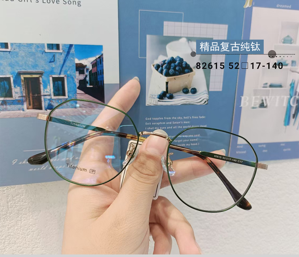 Pure titanium myopia glasses female ultra - light vintage glasses frame large frame of glasses male fashion glasses ink green 82615