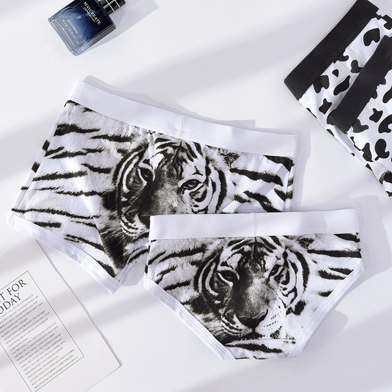 Lovers Briefs Suit Pure Cotton Quality New Tiger Printed Men's Four Corner Pants Girls Triangle Sexy Trend Cartoon