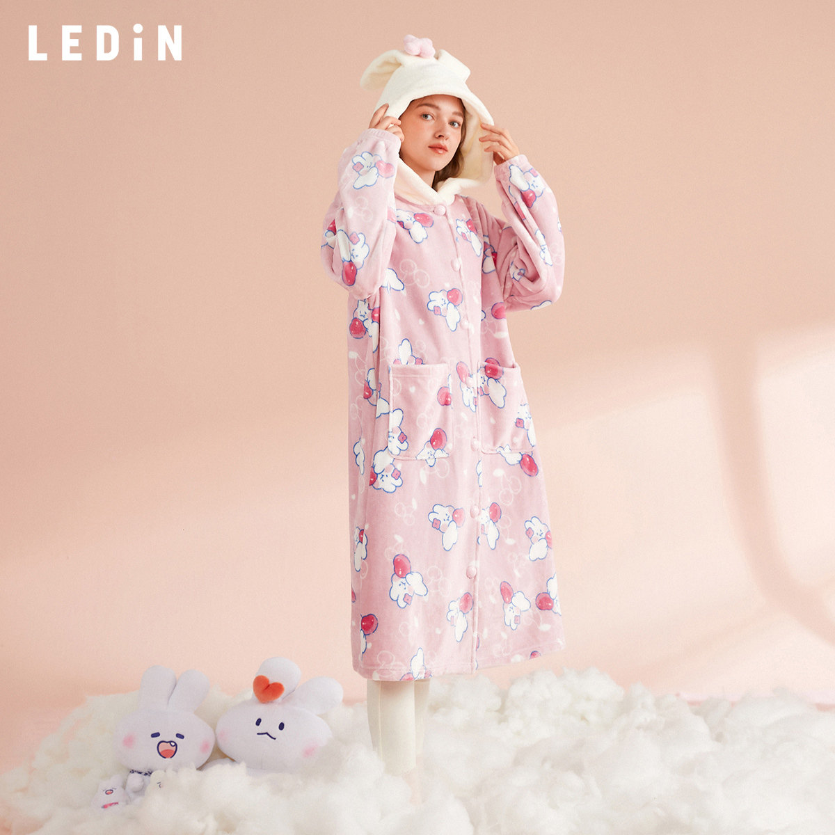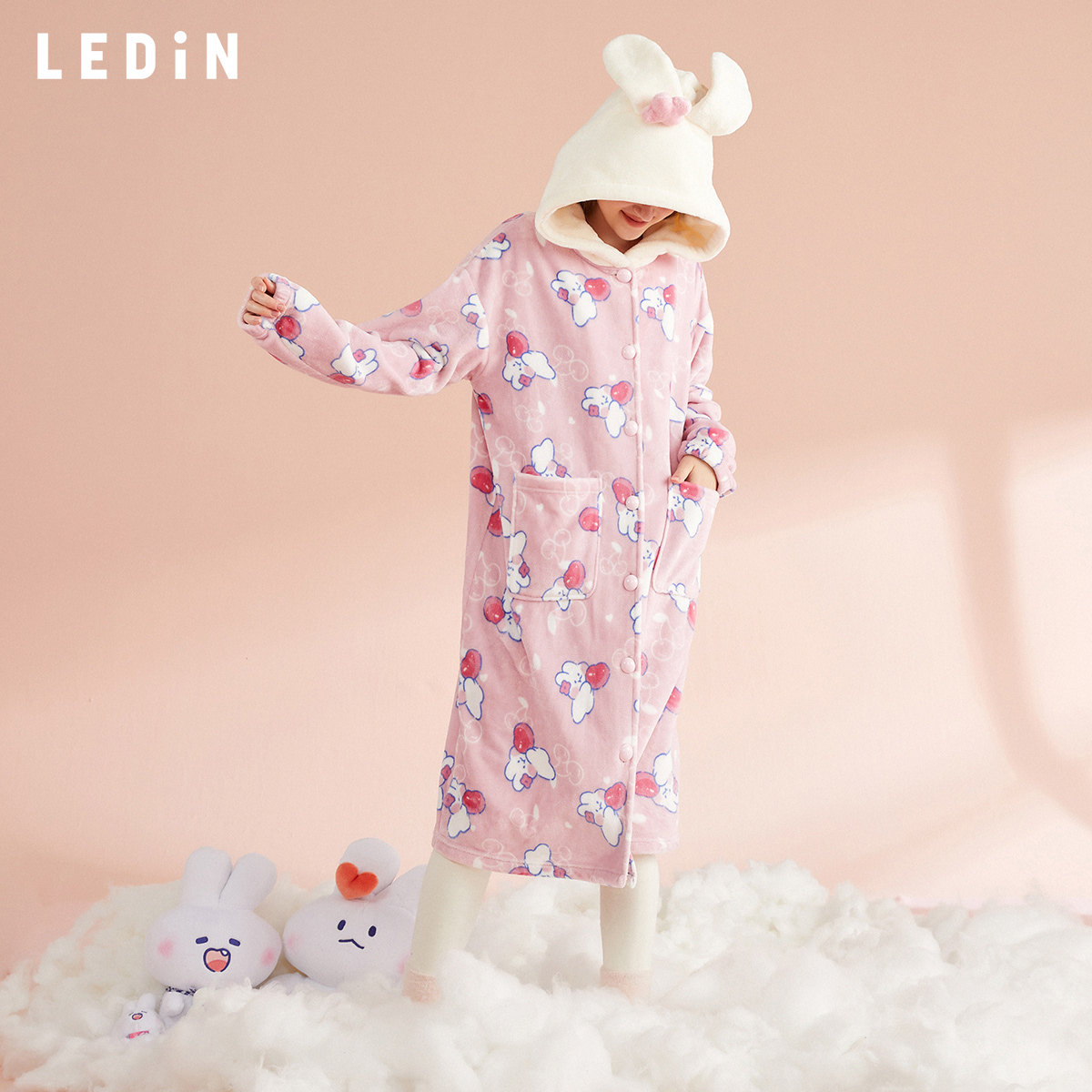 Soft cute rabbit with a full print sleeping robe.