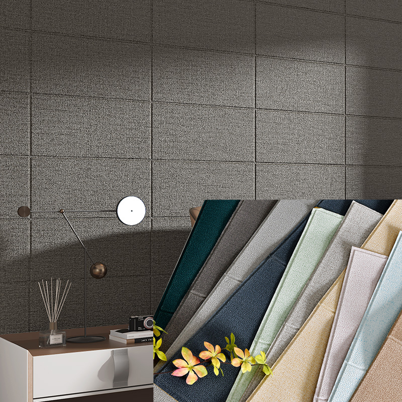 Simple linen wallpaper self-adhesive bedroom warm wall decoration 3d embossed sticker waterproof and moisture-proof background wall wallpaper