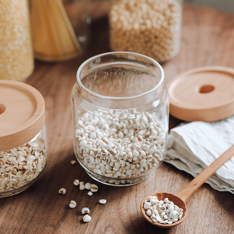 Multigrain Coffee Bean Sealed Can Beech Wood with Lid Japanese Style Glass Bottle Kitchen Storage Jar Food Grade Tea Storage Jar - Taobao