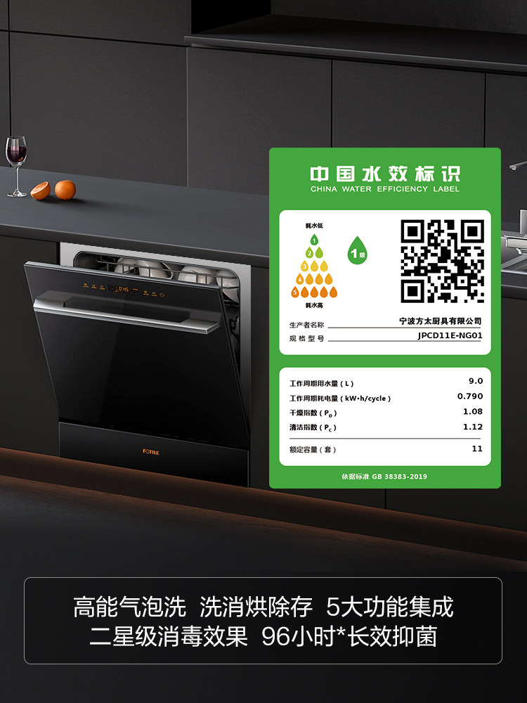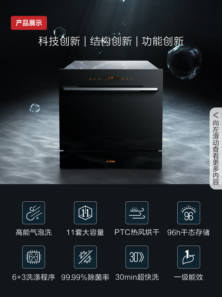 2021 new products Fotile square too JPCD11E-NG01 fully automatic embedded dishwasher disinfection All