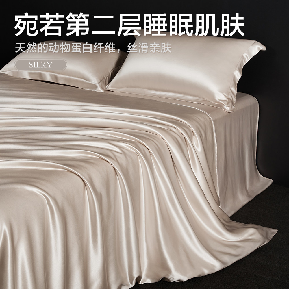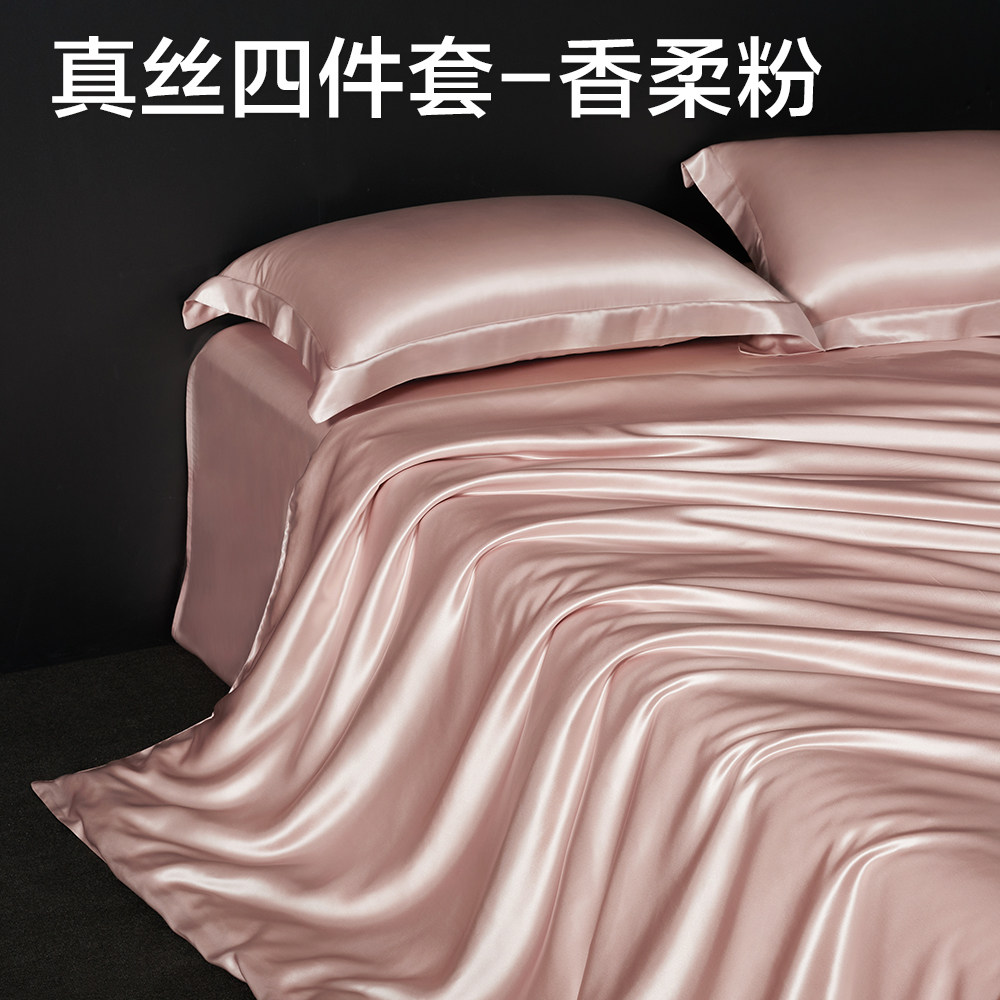 Genuine silk four pieces-champagne gold genuine silk four pieces-fragrant soft pink silk 4 pieces-gentleman grey silk four pieces-Smear Green Genuine Silk Four Pieces-Purple Hasha Genuine Silk Four Pieces-Pearl White