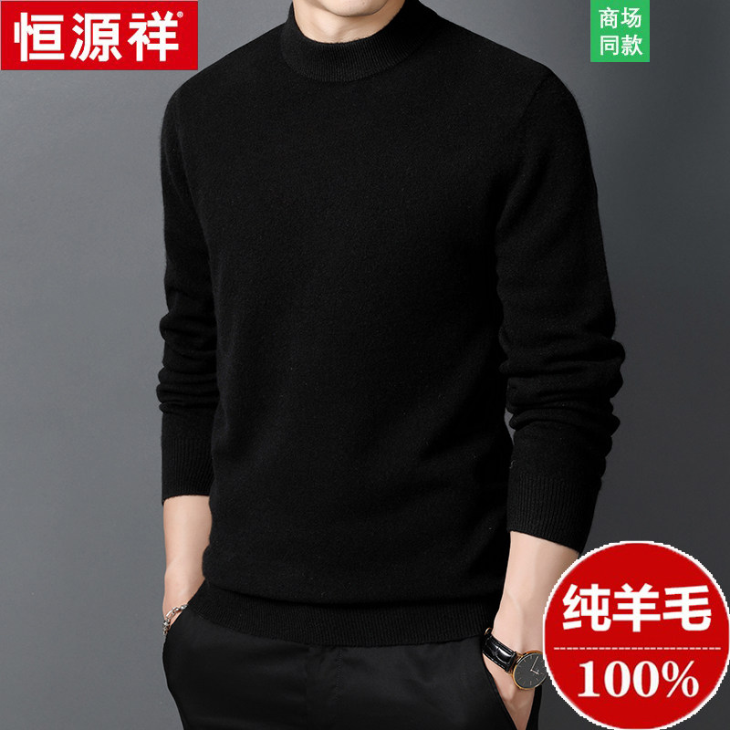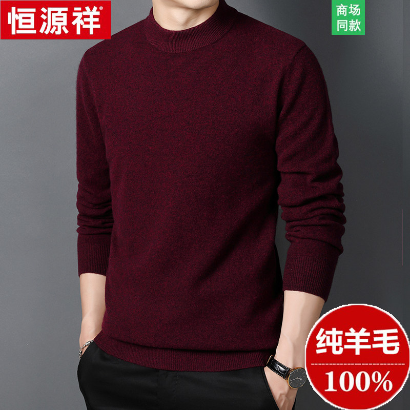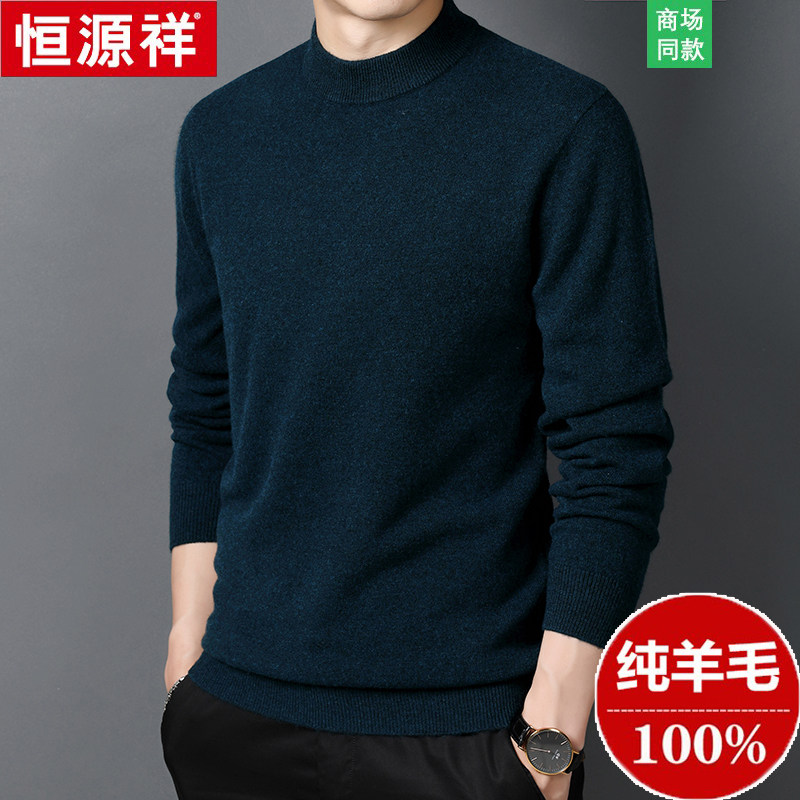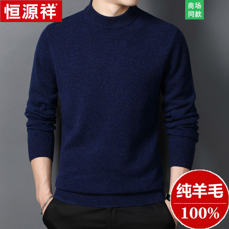 Hengyuanxiang Cashmere Sweater Men's Half High Collar Winter Thickened 100% Pure Wool Sweater Middle-aged and Elderly Pullover Sweater Large Size