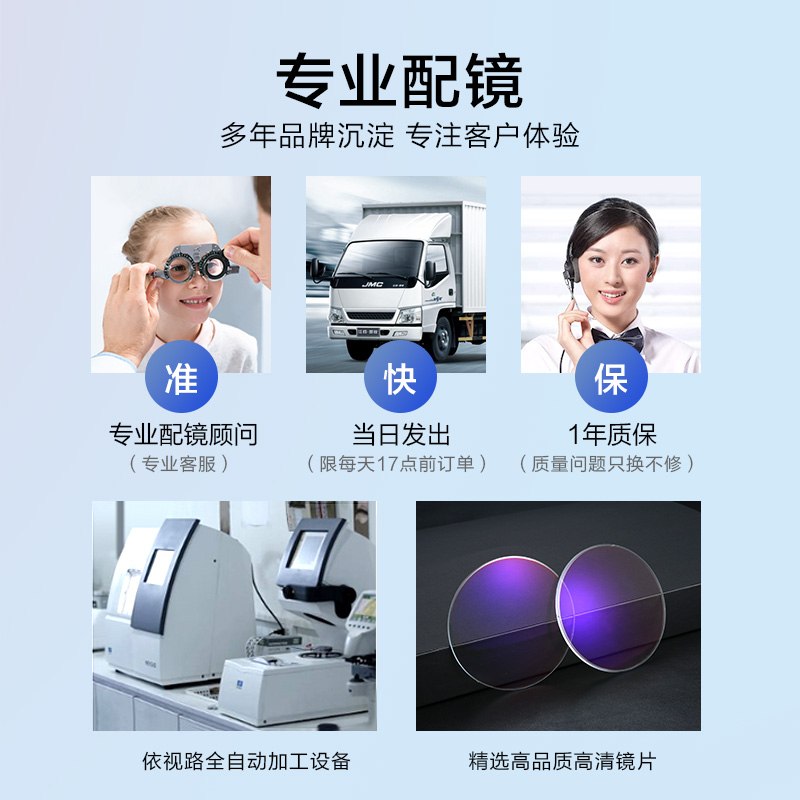 Accessories No degree anti-Blu-ray lenses 1 56 thin anti-blue light lenses (suitable for 0-300 degrees) 1 61 thinner anti-blue light lenses (suitable for 0-500 degrees) 1 67 ultra-thin