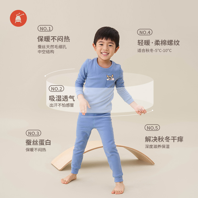 Little sweet potato children's silk soft cotton threaded underwear set 2022 autumn and winter double-layer thickened boys and girls autumn clothes