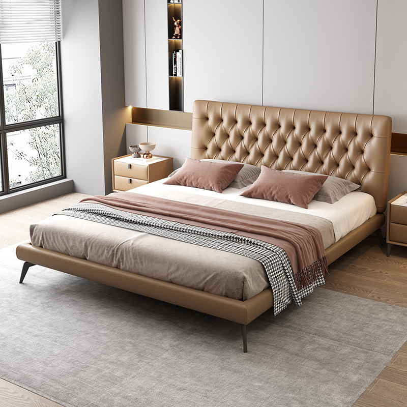 Leather bed light luxury modern minimalist master bedroom big bed upholstered net red wedding bed Italian style minimalist high-end American double bed