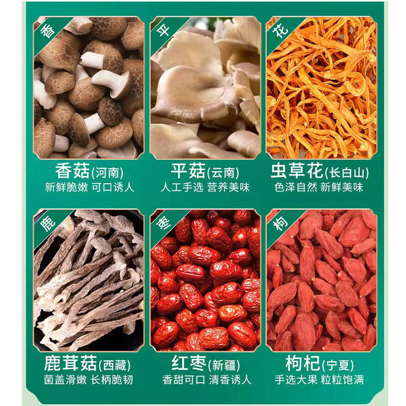 Nine-colored mushroom soup package combination (4 packages) 400 grams Sishen soup combination (10 packages) 600 grams Wuhong soup combination (10 packages) 1100 grams