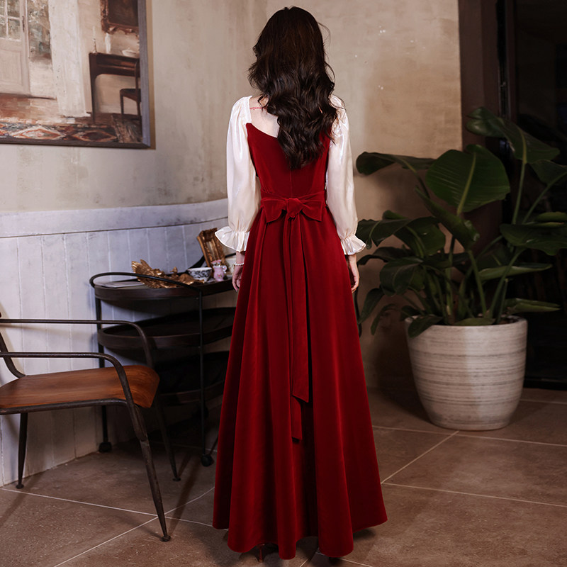 Toast to the bride's new daily wedding engagement Dress Wine Red Color Advanced Sensation Little Evening Dress Lady Summer