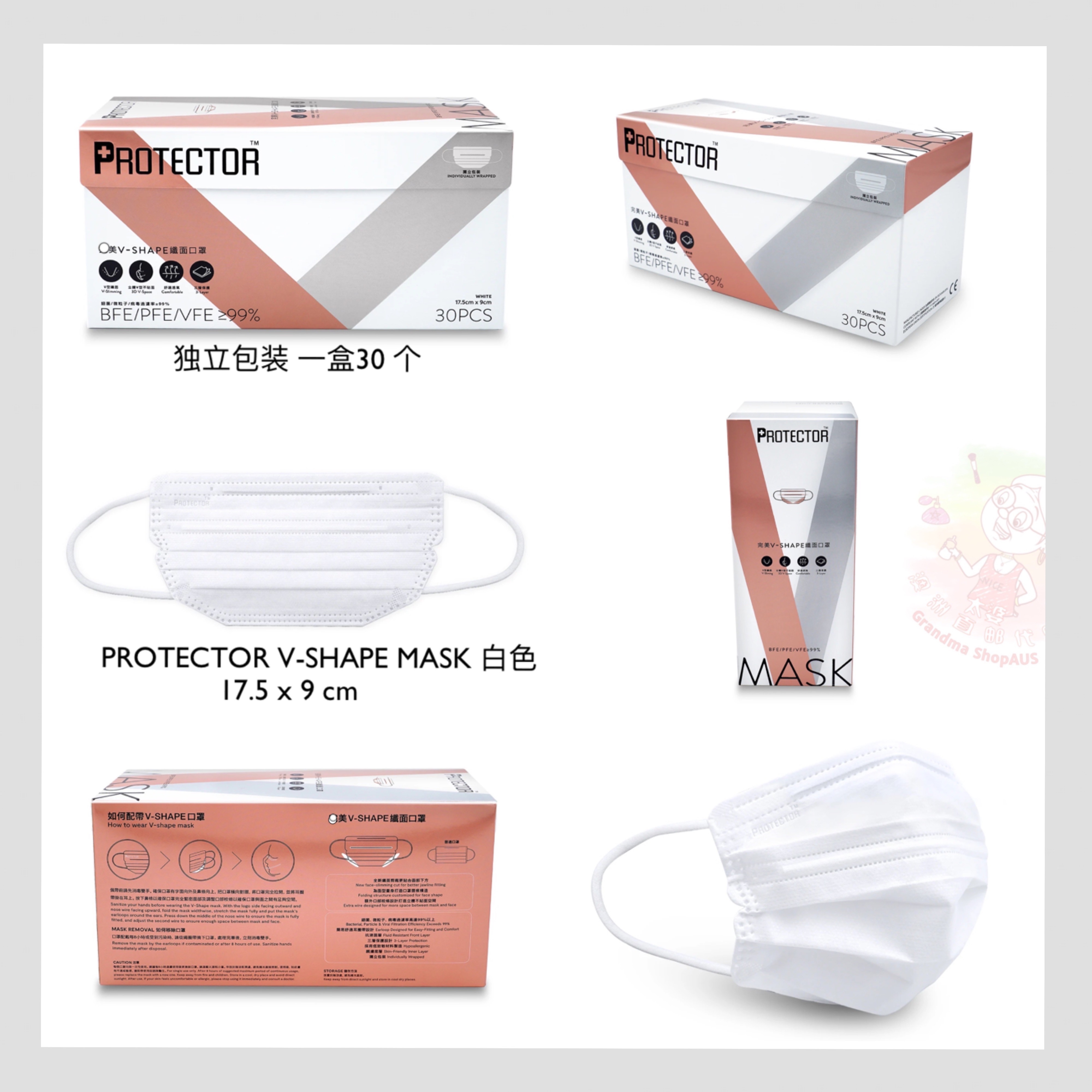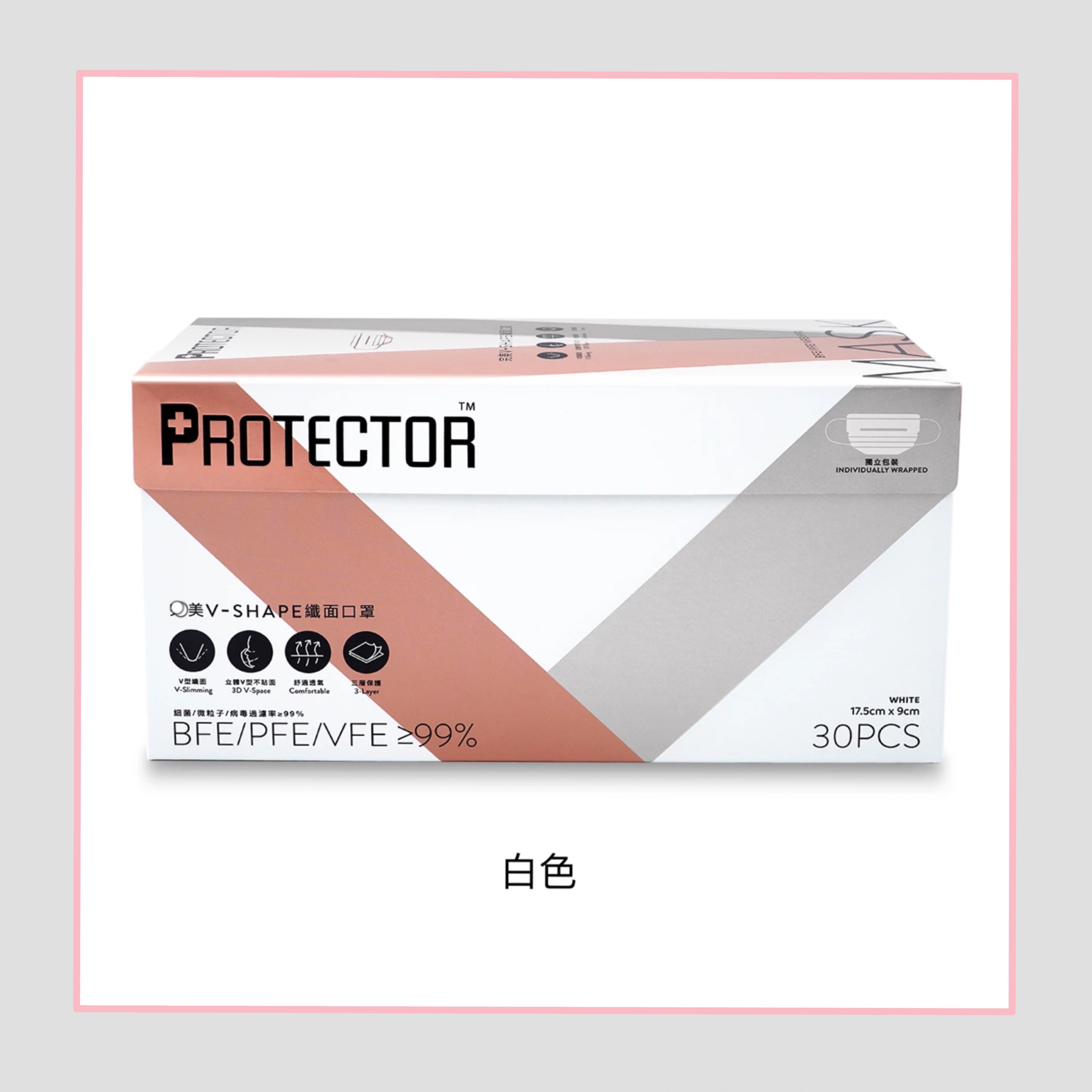 Hong Kong Protector V Shape mask Double aluminium strips Design white pink 30 independent packaging