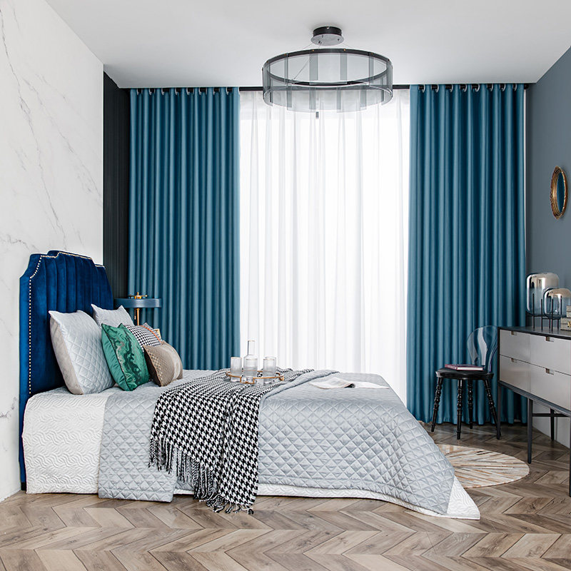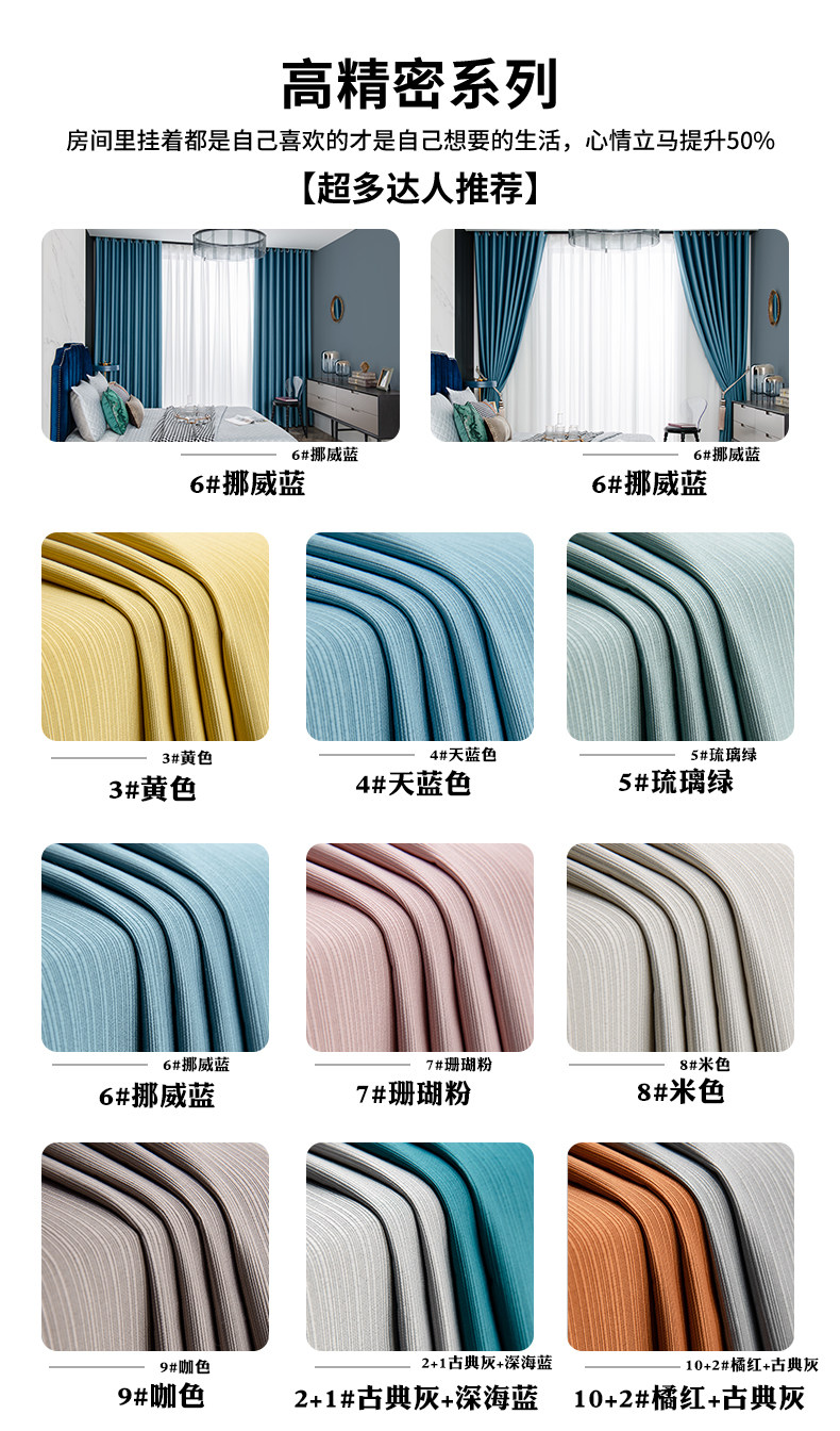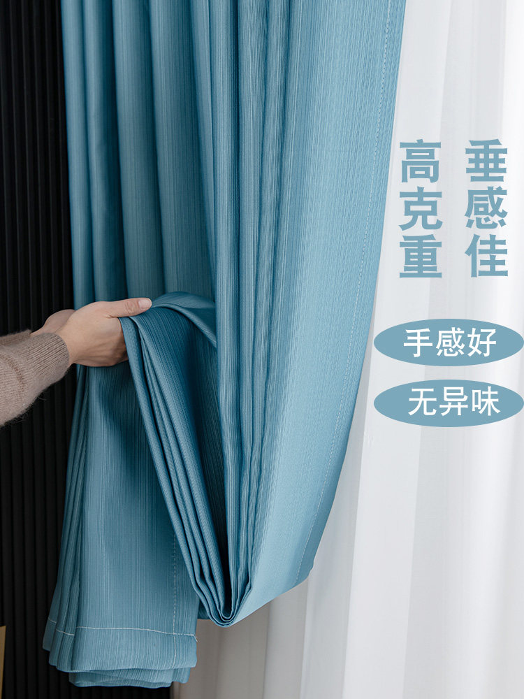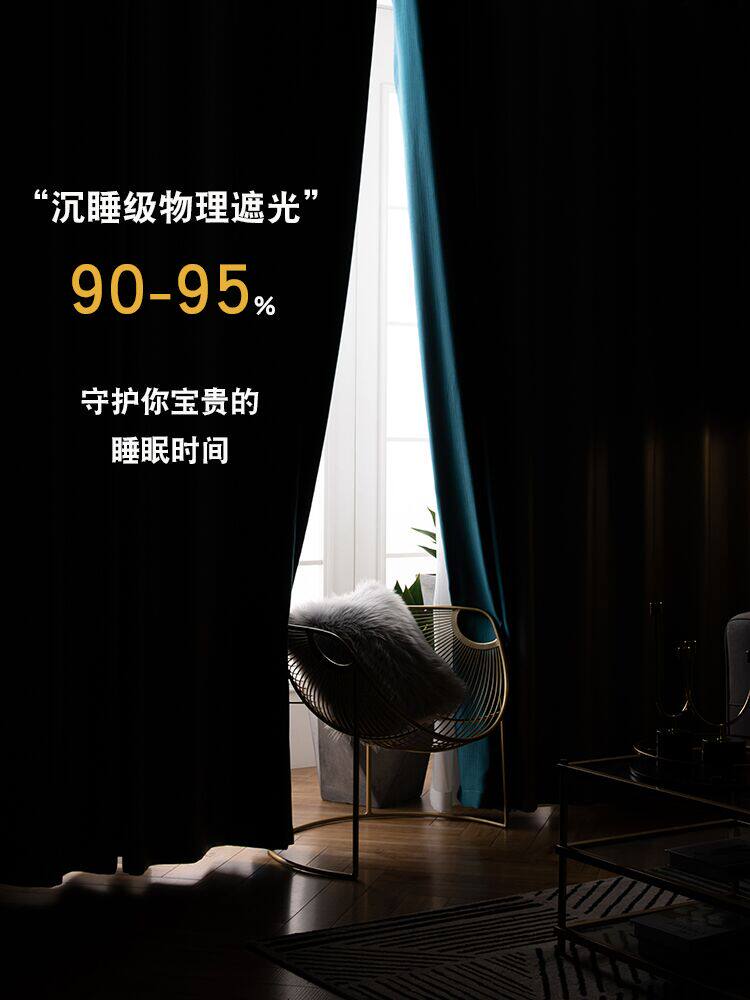 2021 new light luxury silk cotton full blackout bedroom simple modern stitching Nordic style color matching living room curtains