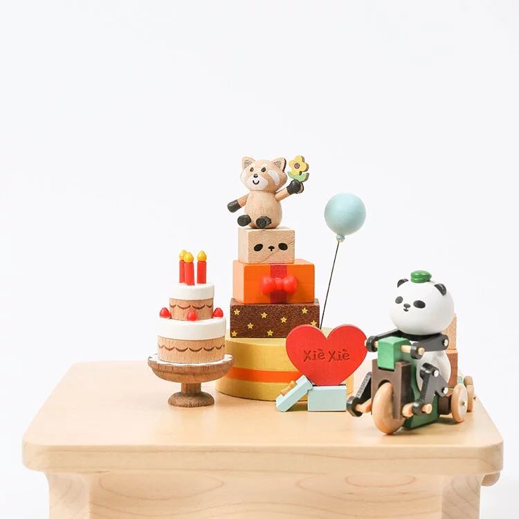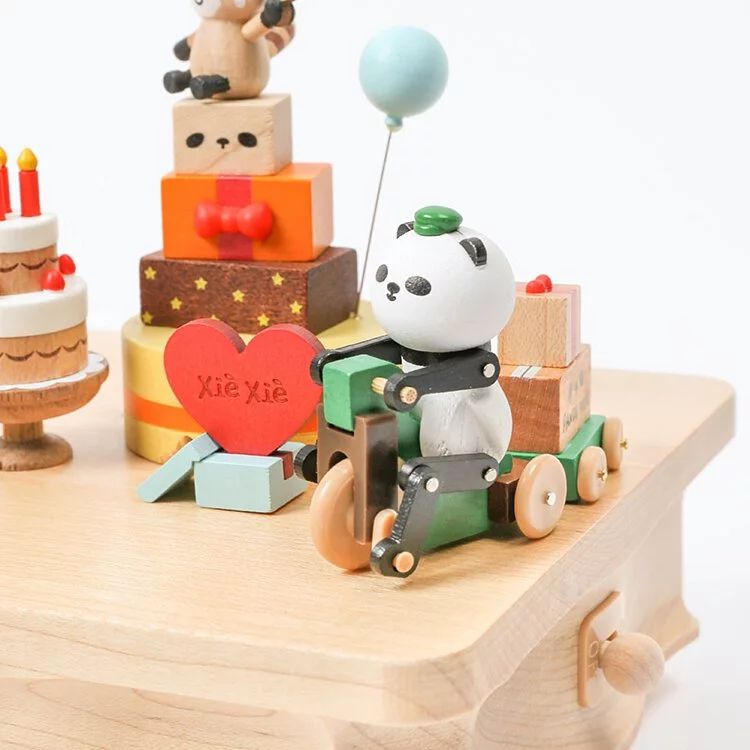 Jeancard Music Box Panda Postman Wooden Gifts Living Room Lovely Birthday Gifts