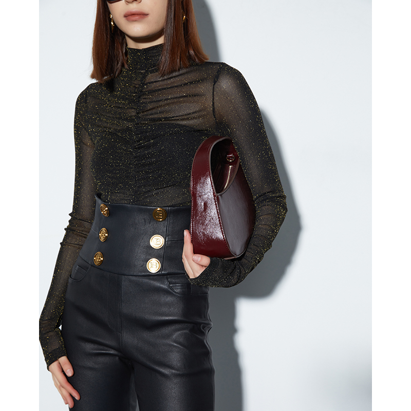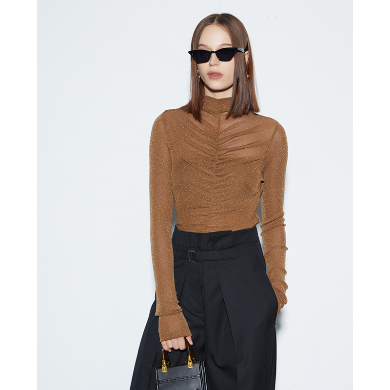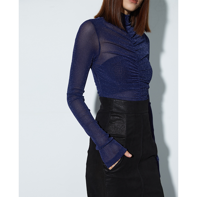 Z boss metal flash micro-transparent ruplexen sweaters S type cut thin through irregular Sexy undershirt woman
