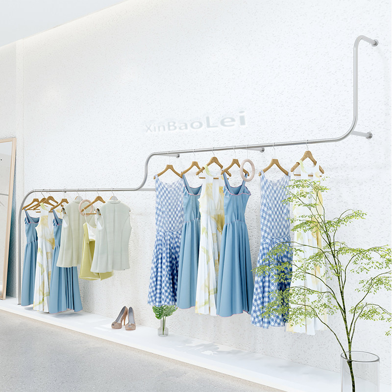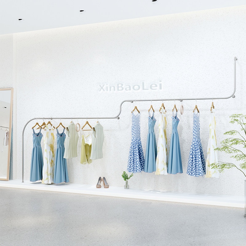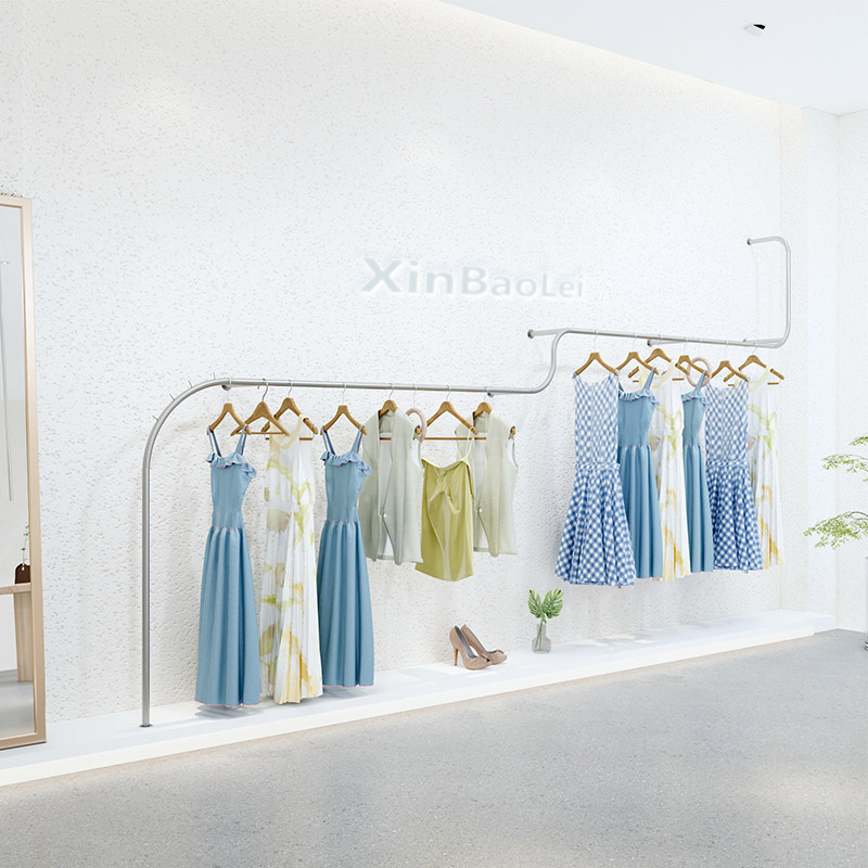 Clothing Show Rack New Stainless Steel Upper Wall Floor Shelf Display Rack Son Hanging Clothes Pole Women's Clothing Store Shelves Clothing Racks-Taobao