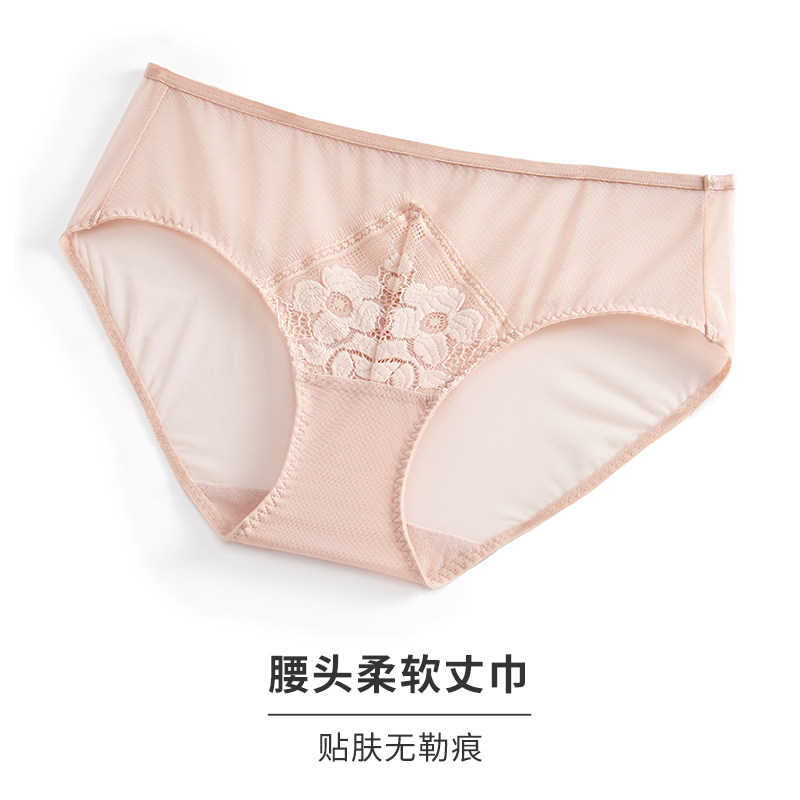 HSIA ya panties women's sexy lace breathable mesh comfort bag hip skin-friendly cotton crotch bottom mid-waist boxers