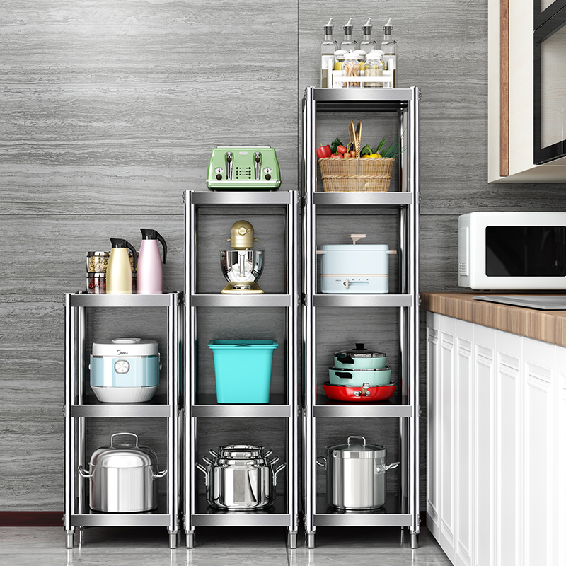The kitchen side refrigerator shelf side holds stainless steel floor-to-ceiling multi-layered sandwich fruit and vegetable rack gap storage rack