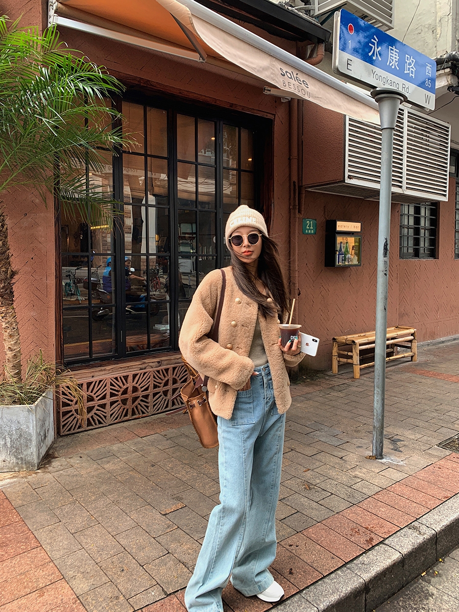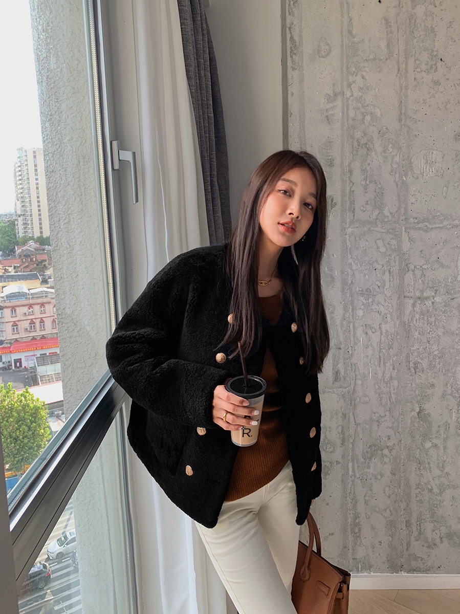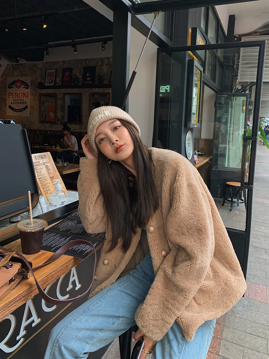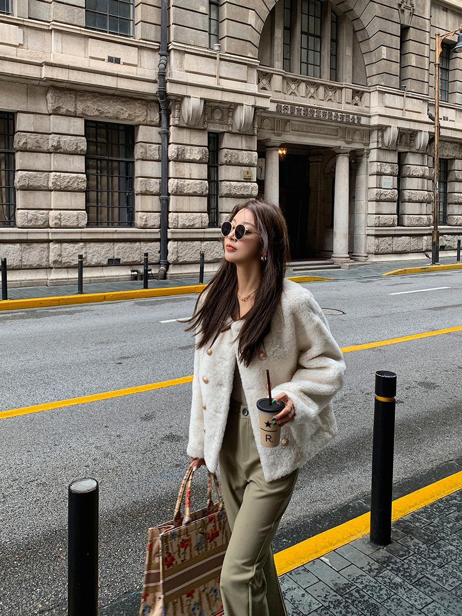 2022 winter new imported merino fur coat women's double-breasted lamb wool young fur short