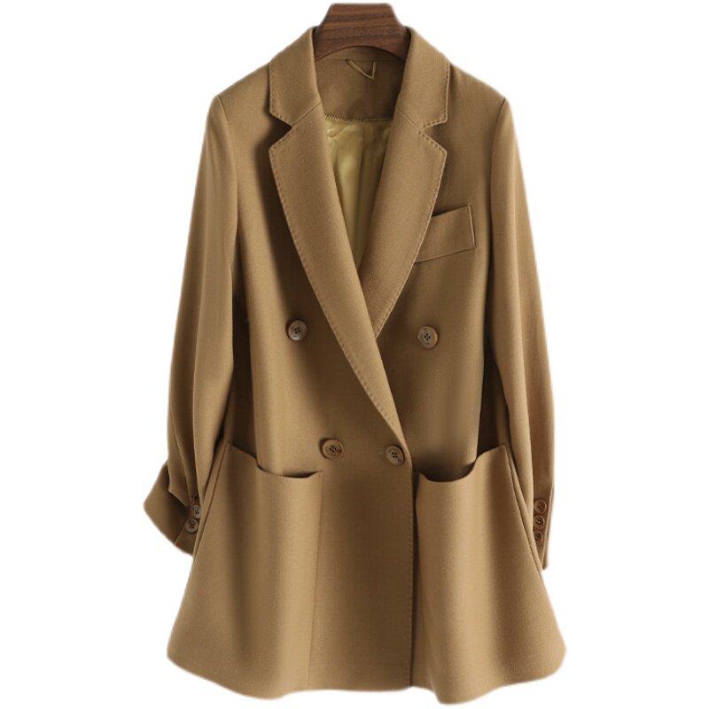 Fine Spinning Wool Suit Woman 2022 Spring Autumn Season New Temperament Commute Body Long Sleeve Pure Color Superior Fur Coat