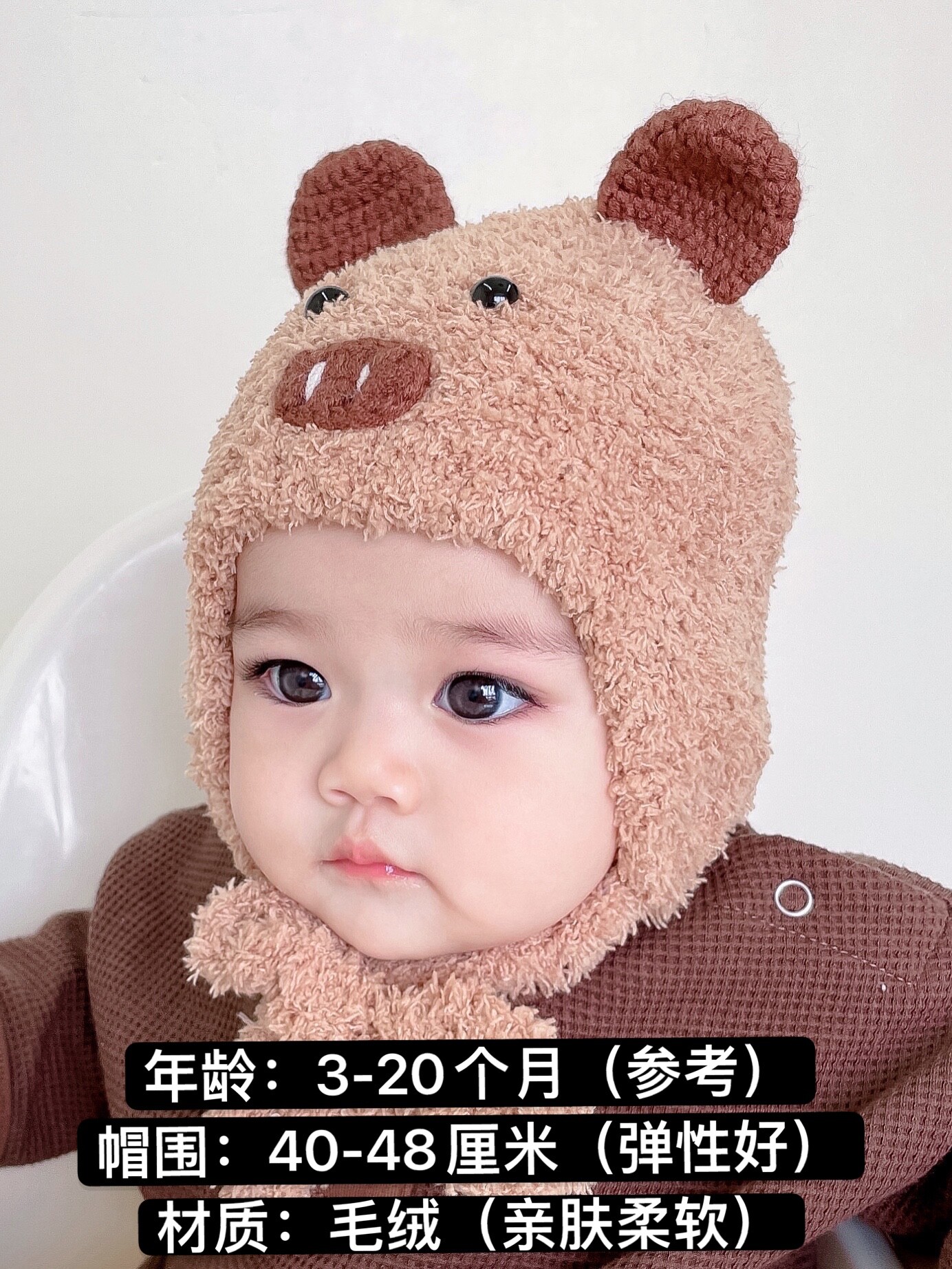 Baby hat autumn and winter children's plush hat cute cartoon boys and girls pullover hat warm baby ear protection hat cold
