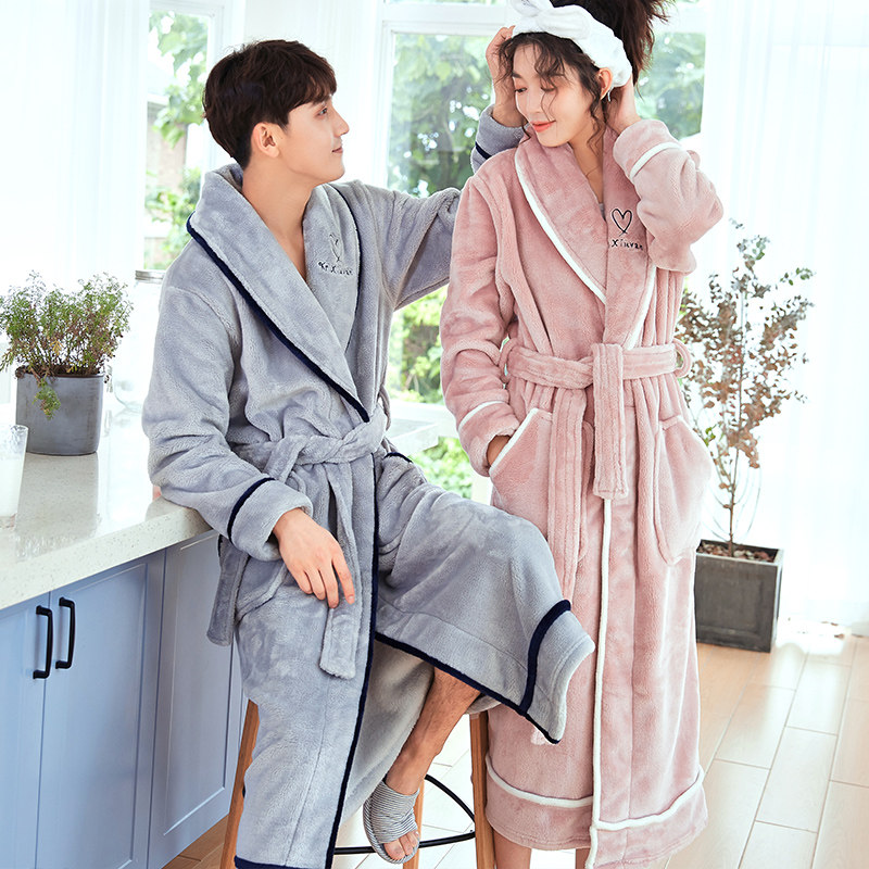 Couple sleeping robes female autumn and winter style coral suede plus suede thickened male bathrobe lengthened winter flange suede pyjamas home clothes