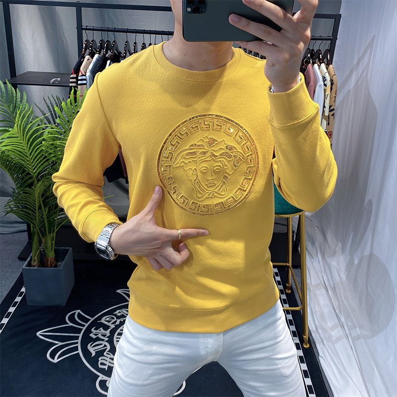 European station high-end sweater men's spring and autumn 2022 new round neck tide brand European men's long-sleeved embroidery sequin trend