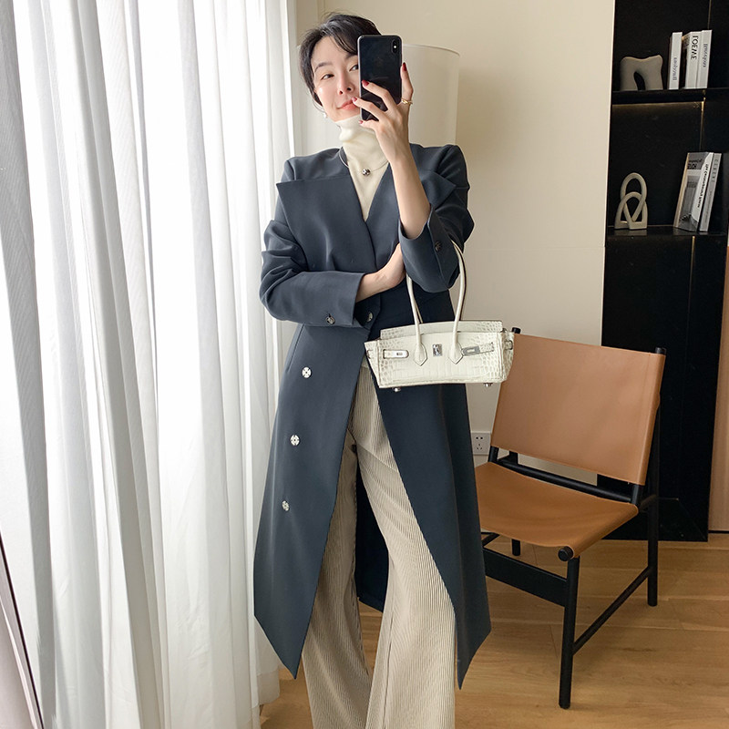 Cui Auner customize the three-dimensional styling long version of the cashew with large turn of the wind and the temperament to collect the women's suit for the autumn