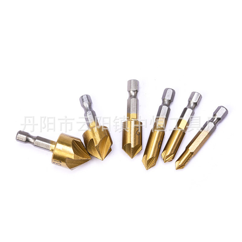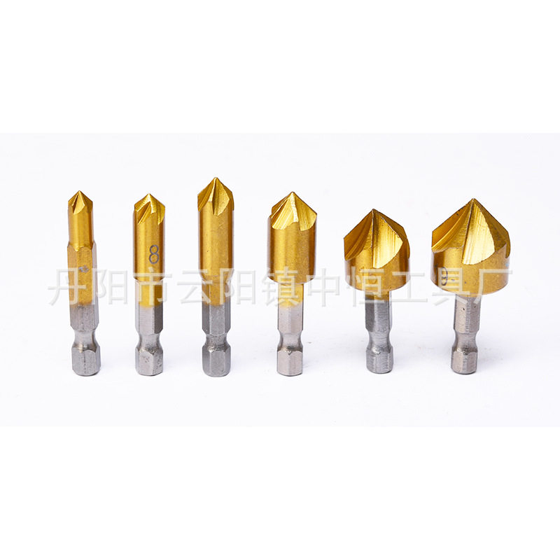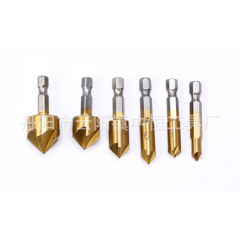 Cross border 6pcs hexagonal handle plated titanium five-edged bevelling machine 6-19mm Wood-working chamfered knife 6 pieces of woodworking bevelling machine
