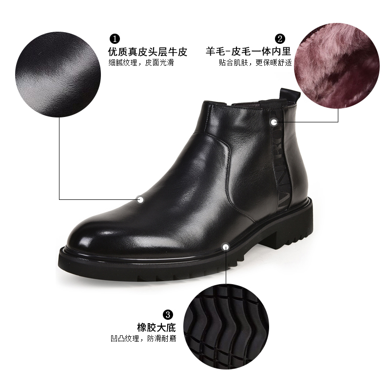 Boots Male fur integrated wool Neri warm cotton shoes thick bottom genuine leather short boots for business casual leather shoes winter