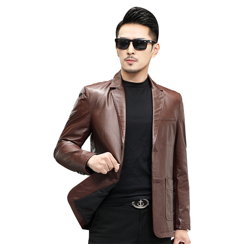 2022 new Haining leather jacket men's spring and autumn style suit collar layer pure cowhide jacket business casual suit