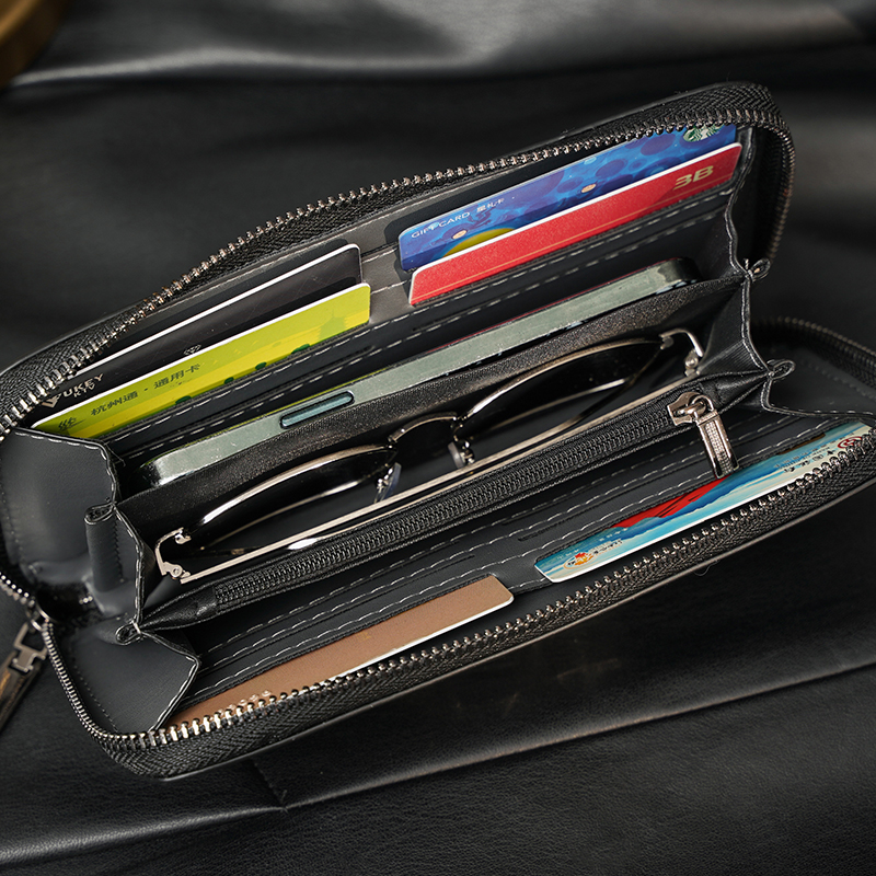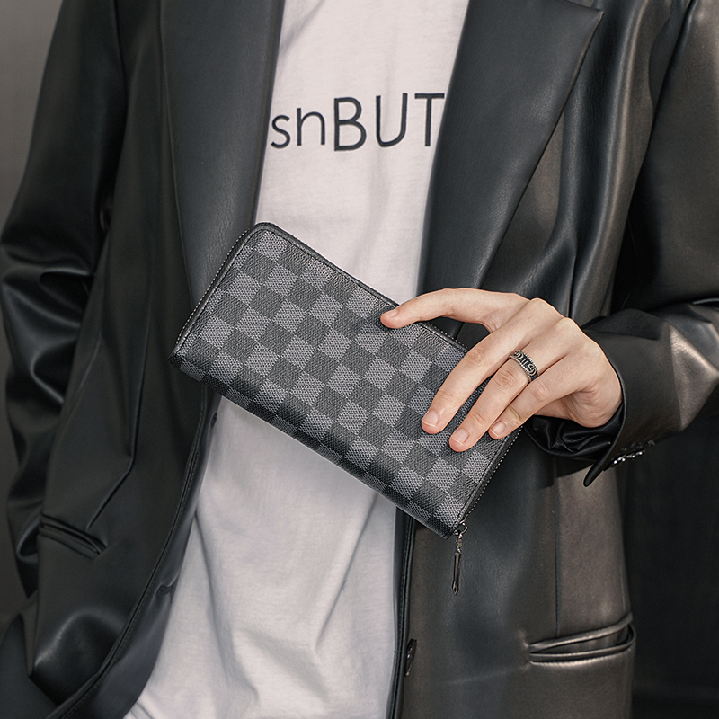 New large capacity grid long wallet Korean version male package multi-position card with money clip zero money bag casual fashion mobile phone bag