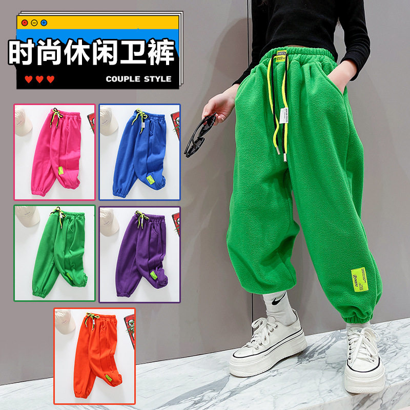2021 autumn and winter new warm pants boys and girls can be worn outside plus velvet casual all-match polar fleece middle children's trousers trend