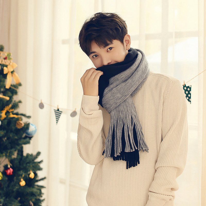 Tide brand cashmere scarf men's winter Korean version thickened warm wool scarf men's gift box birthday gift versatile