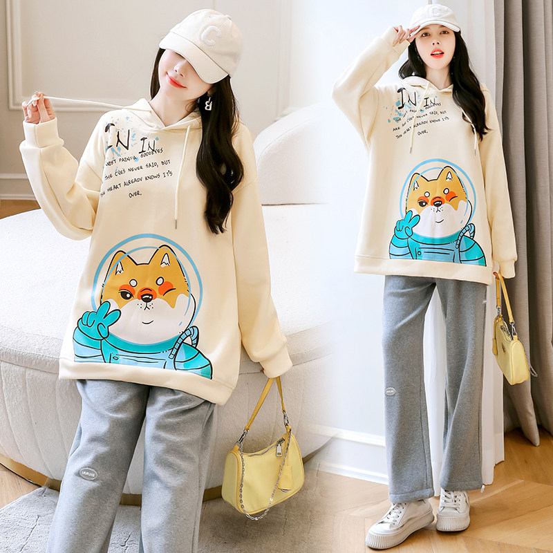 Autumn Winter Pregnant Woman Plus Velvet Clothing Fashion style Suit Loose Large Size Blouse Jacket Casual Sports Pants External Wear Pants Winter Clothing