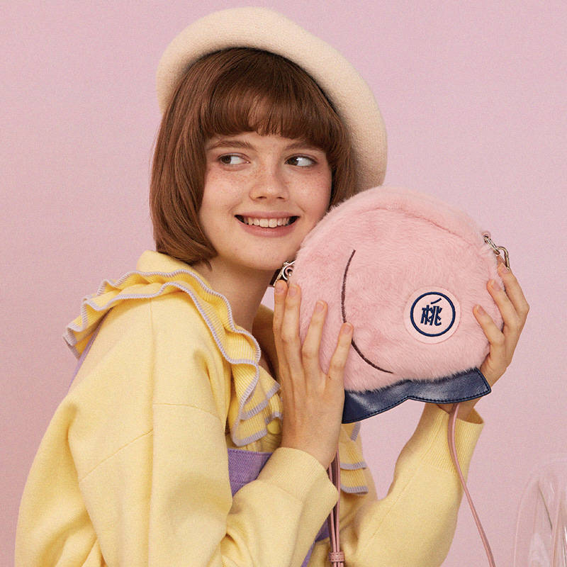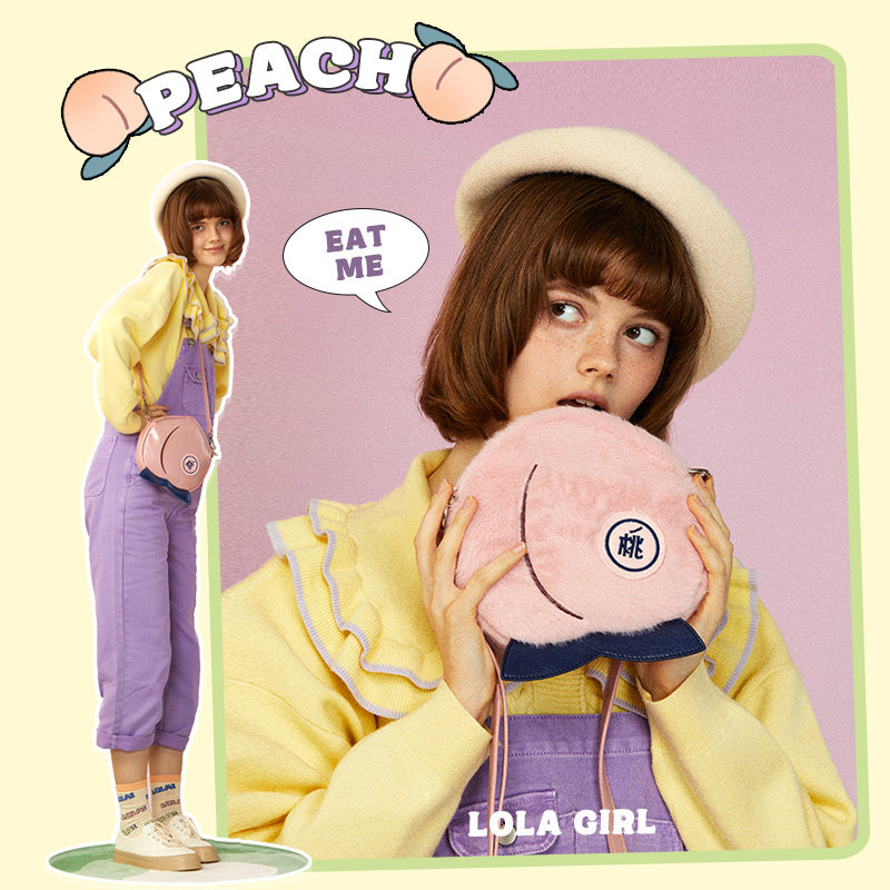 LOLA DESIGN "Peach Gas Girl" Plush Suede Satchel Satchel Cute Little Satchel Bag Woman Single Shoulder Bag