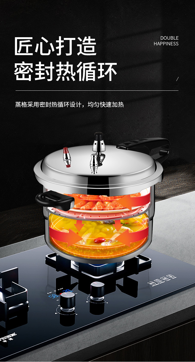 Double Happiness pressure cooker household gas pressure cooker mini small thickened explosion-proof safety gas steam grid pressure cooker cooker