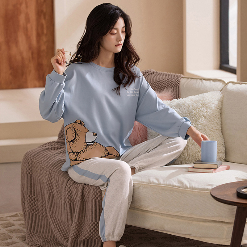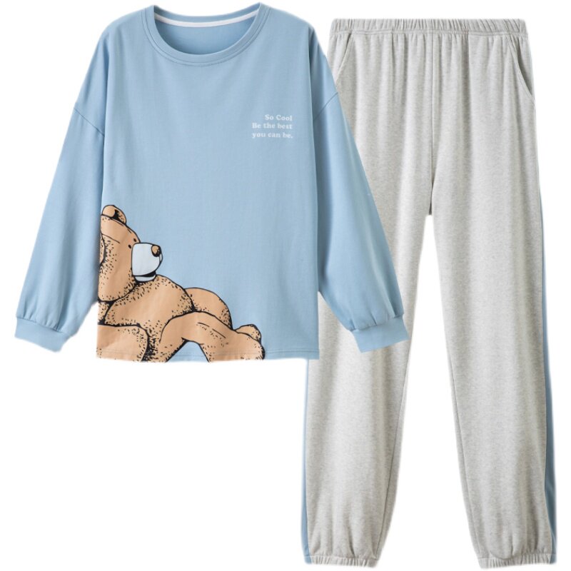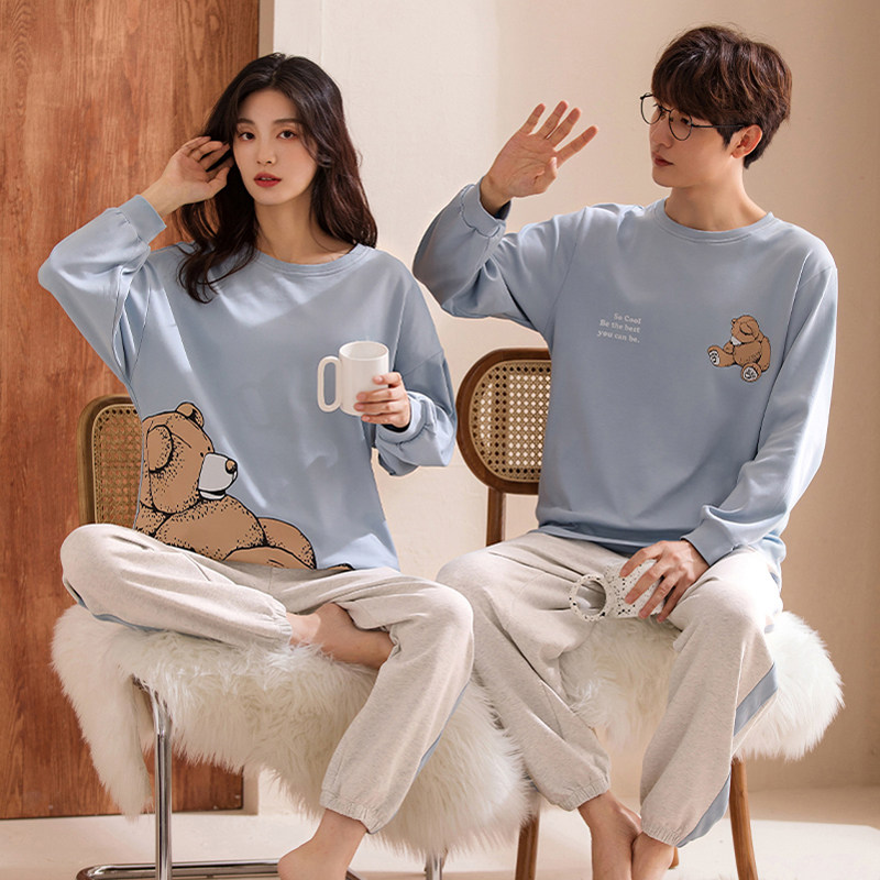 2021 new lovers sleepwear women's spring autumn pure cotton long sleeves head long pants round collar can be worn outside the boys' home jacket