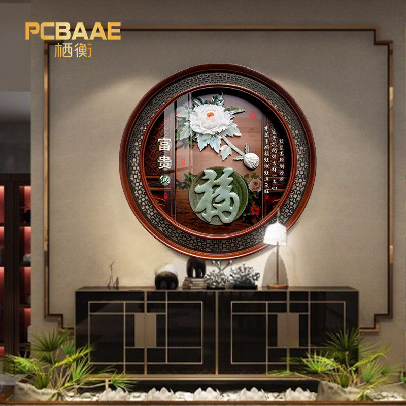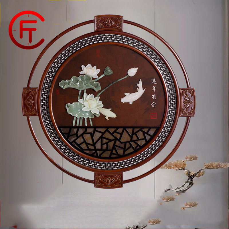Chinese-style persimmon Ruyi jade carving living room decorative painting solid wood hanging painting entry porch tea room dining room lucky mural