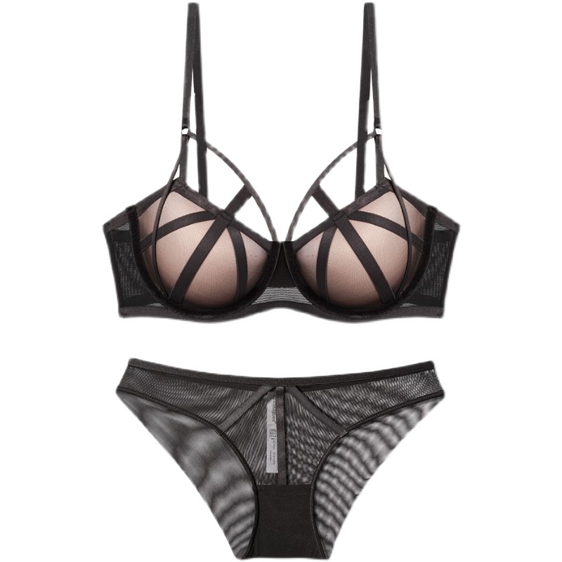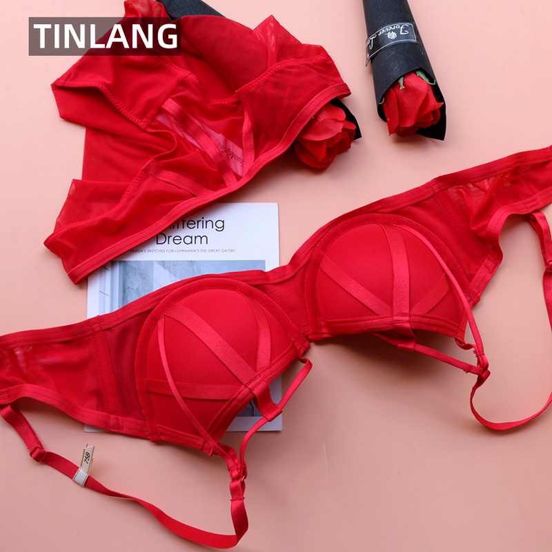 This year's red underwear women's European and American sexy strap bra gathering bra set to receive milk lace small chest