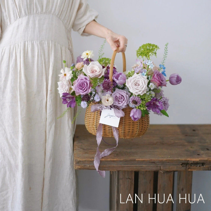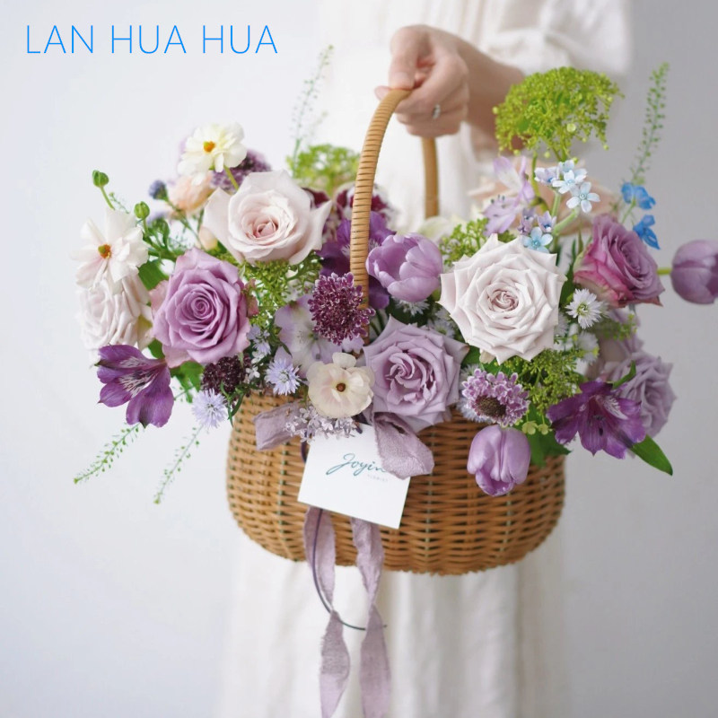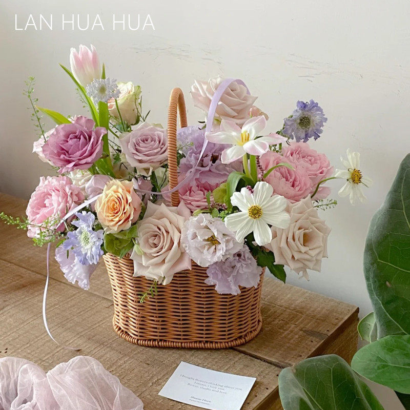 Imitation rattan hand-held flower basket idyllic iron art hand-woven basket dried flowers flower arrangement retro ornaments small flower basket