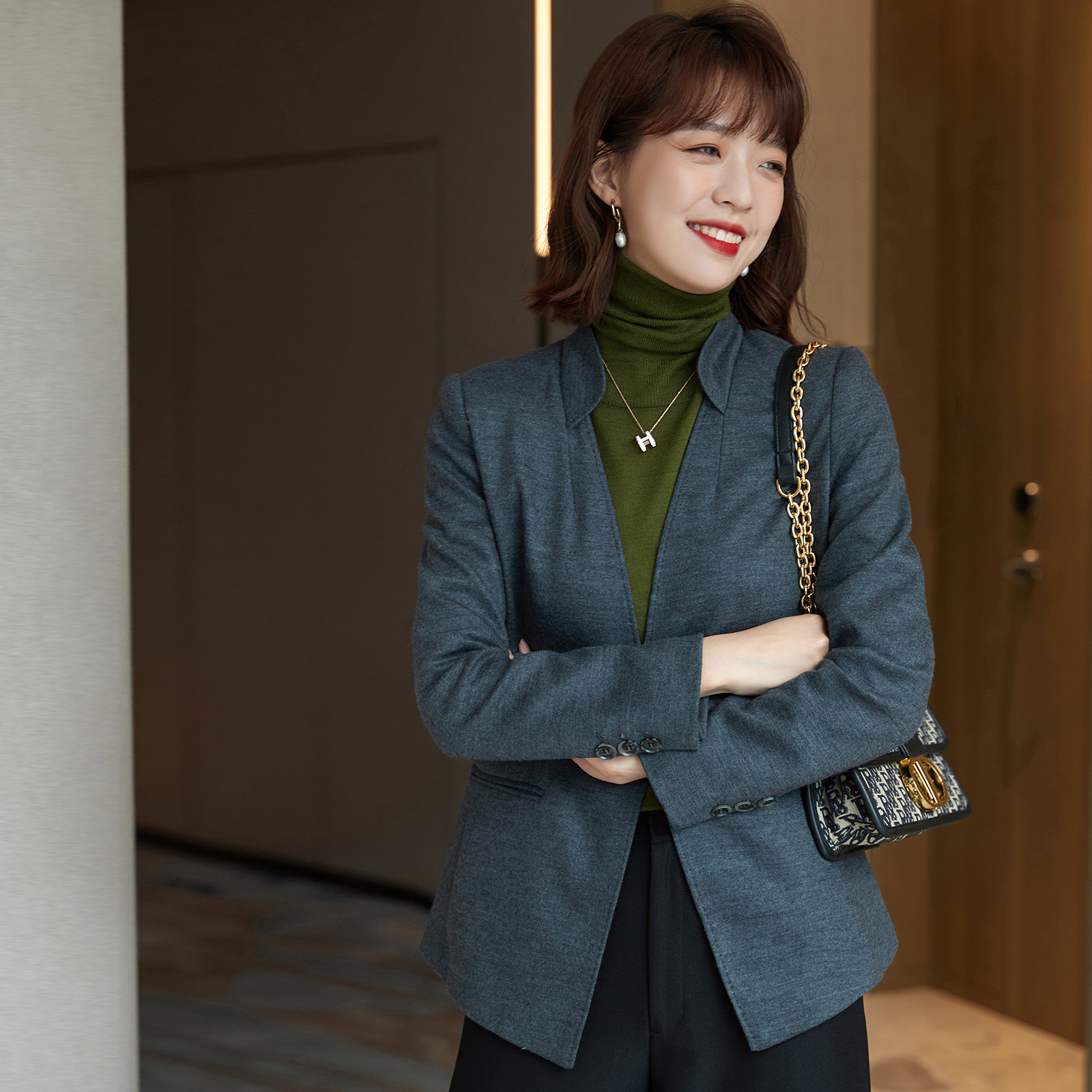 Quite sphinced with a type of sashimi, 2022 Spring autumn season new high-end temperament workplace commuter wool women's clothing