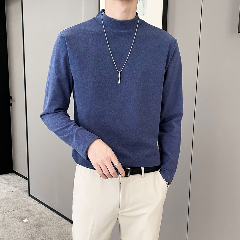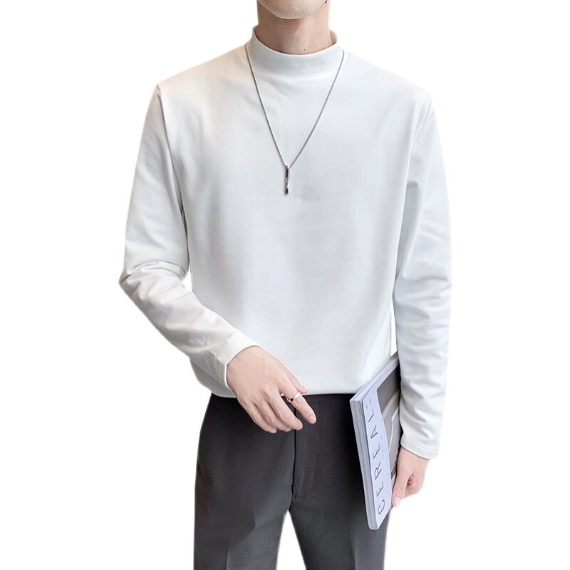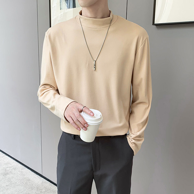 Tide Cards Fall Semi-High Collar Jersey Men Casual Inner Hitchhiking Korean Version Suede Long Sleeve T-Shirt Light Ripeny Sweater Blouse