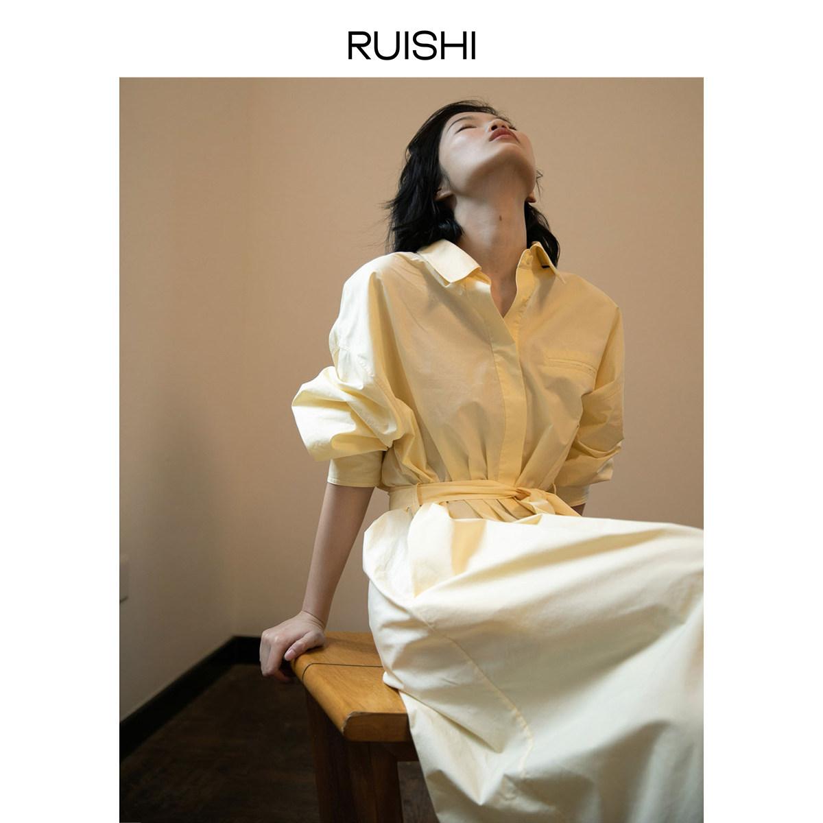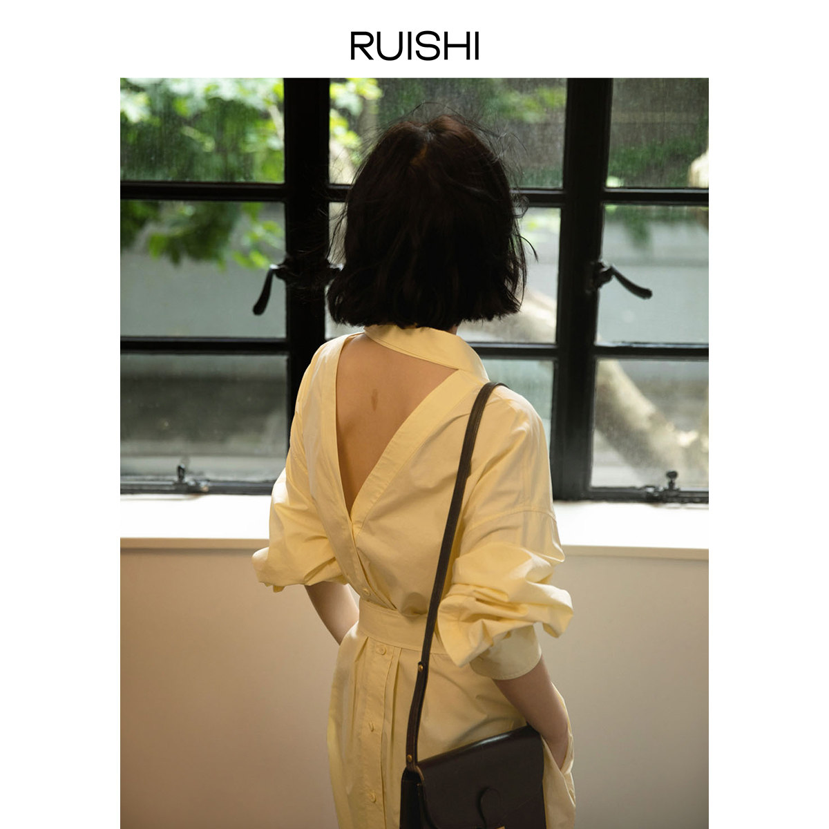 RUISHI Be careful with elegant dew-air style V-collar skin thin sleeve shirt dress spring and summer