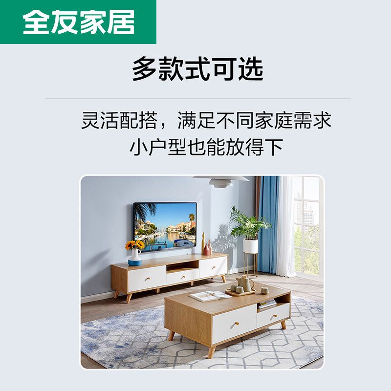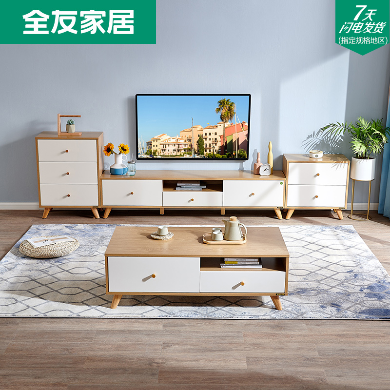 Quanyou home Nordic TV cabinet modern minimalist wood grain living room furniture coffee table TV cabinet combination