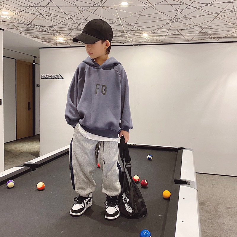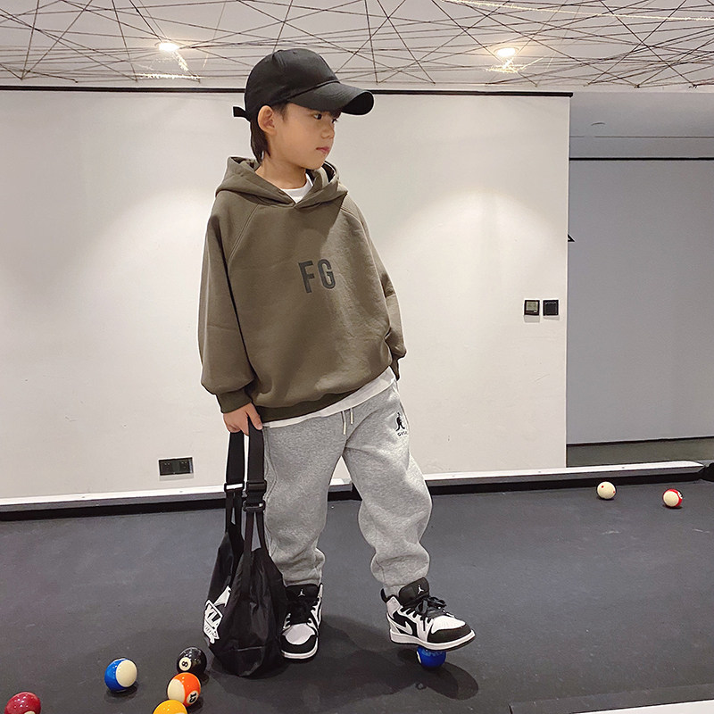 Children plus suede hoodie sweatshirt 2021 new boy winter clothing integrated suede head jacket tide CUHK coulter blouses