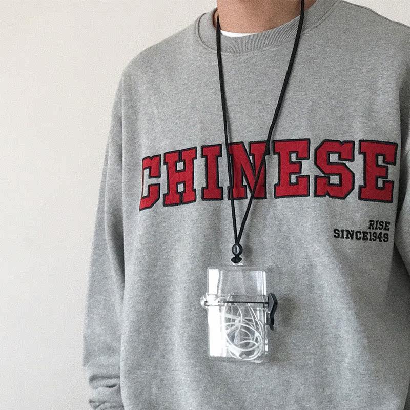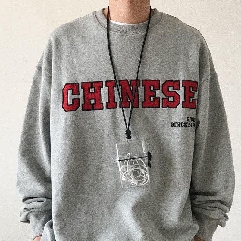 youyifan autumn Japanese retro round neck thick cotton T men and women oversize lazy wind loose Harajuku style embroidery