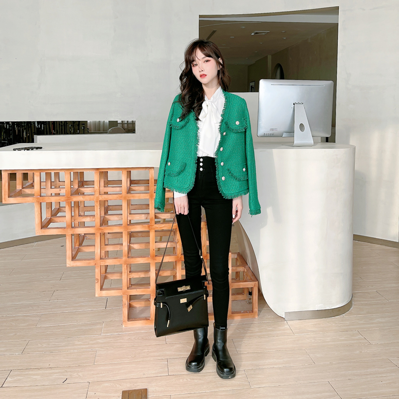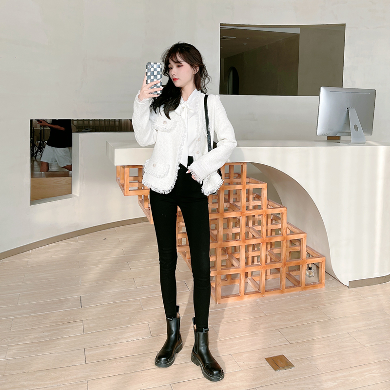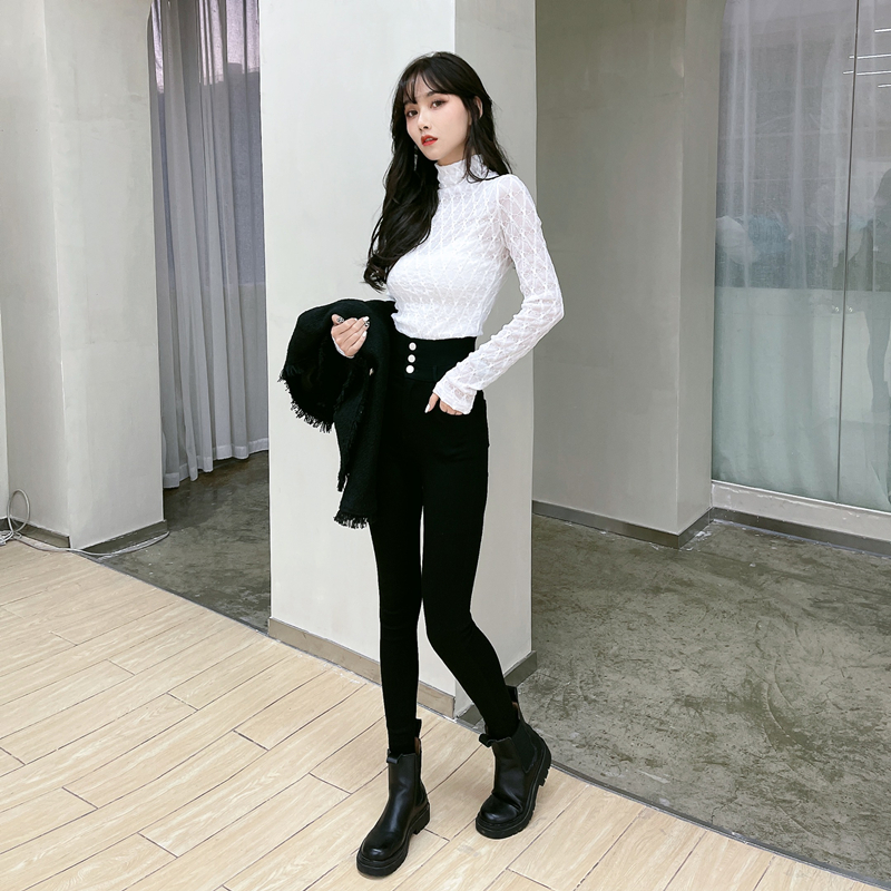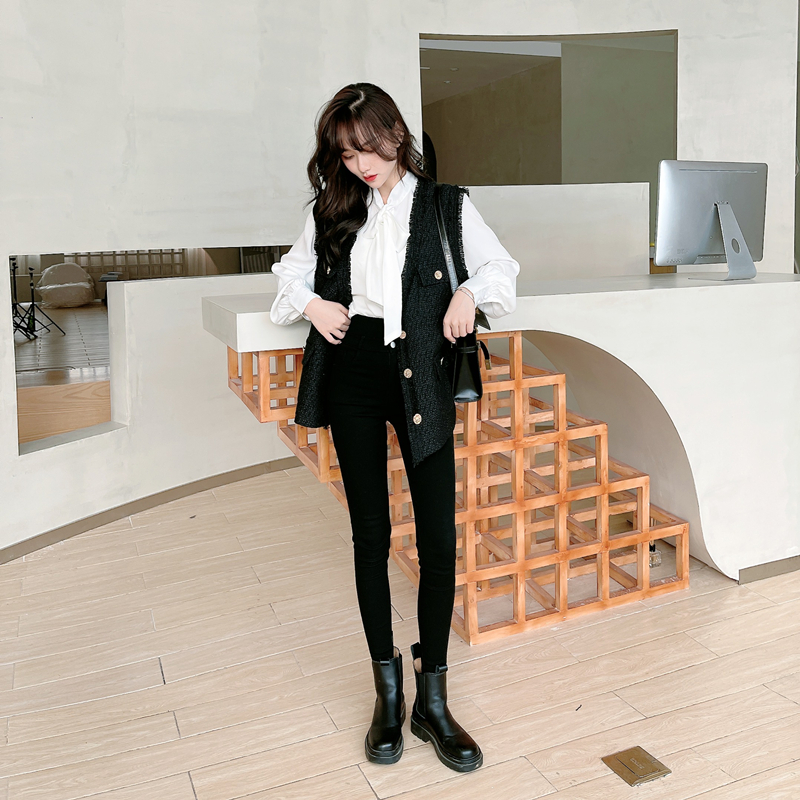 Kaka women's official flagship Korean version of the high-waisted small-footed trousers women's outer wear plus velvet three-breasted magic black pants