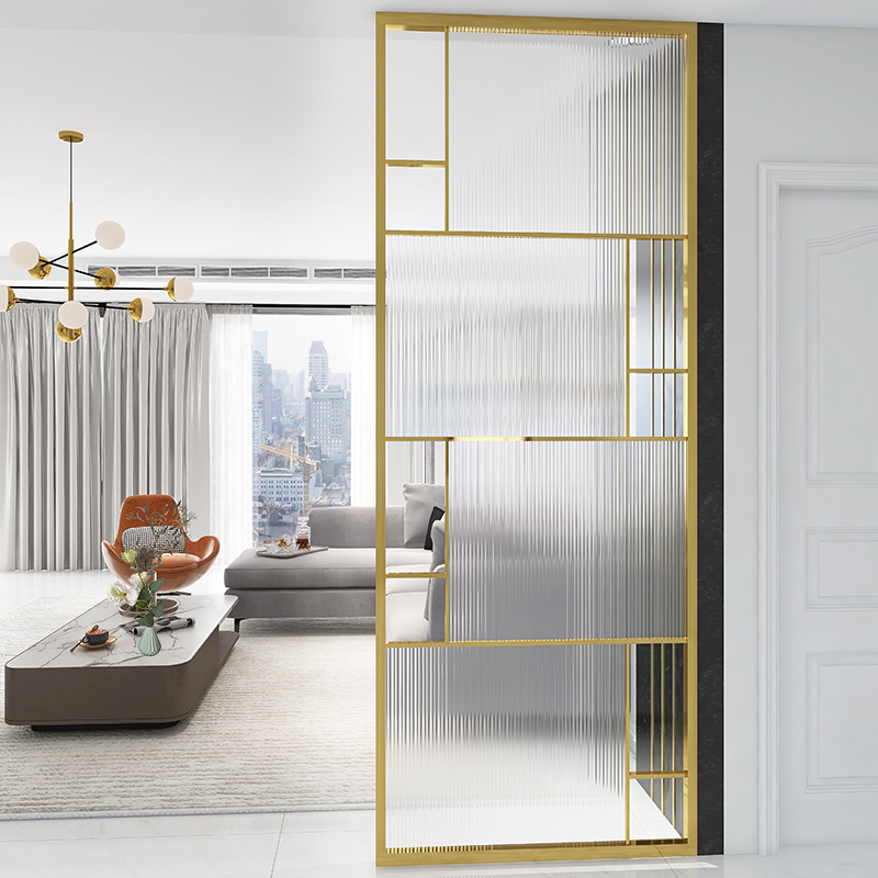 Stainless steel Changhong glass screen Nordic modern light and luxurious livingroom entrance into the house Xuanguan Metal iron Art Deco Decorative Partition Wall