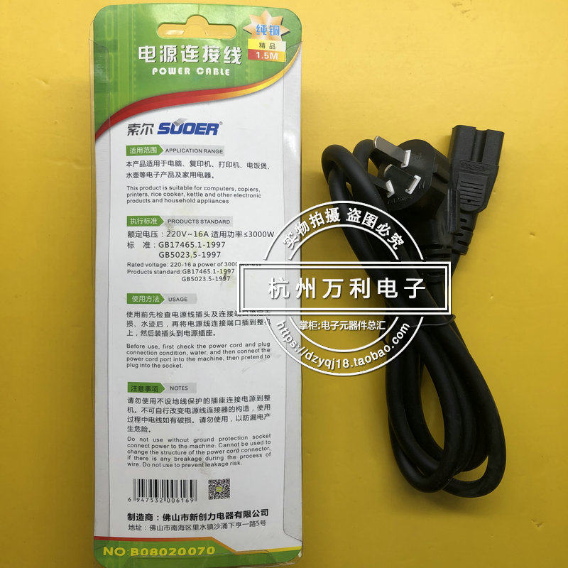 Sol pure copper wire 1 square high-power copy printer rice cooker rice cooker computer power cable