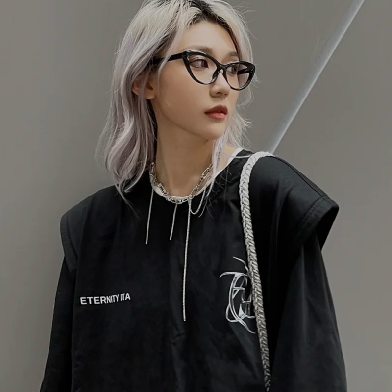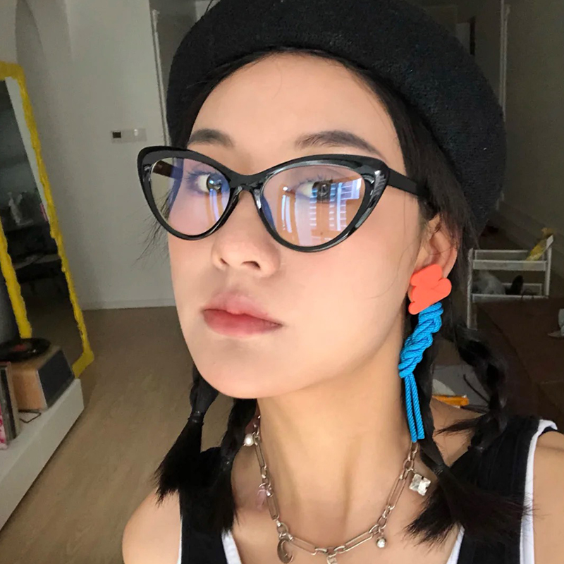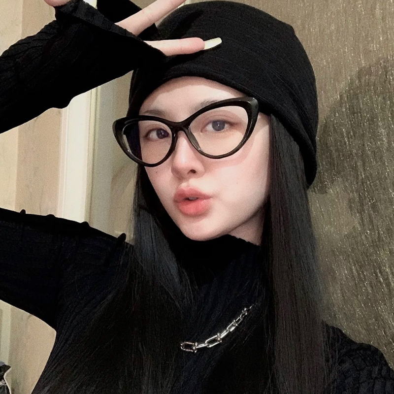 European and American cat-eye glasses frame female black frame hot girl plain face high-end personality niche frame anti-blue light with myopia