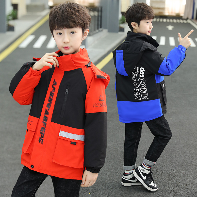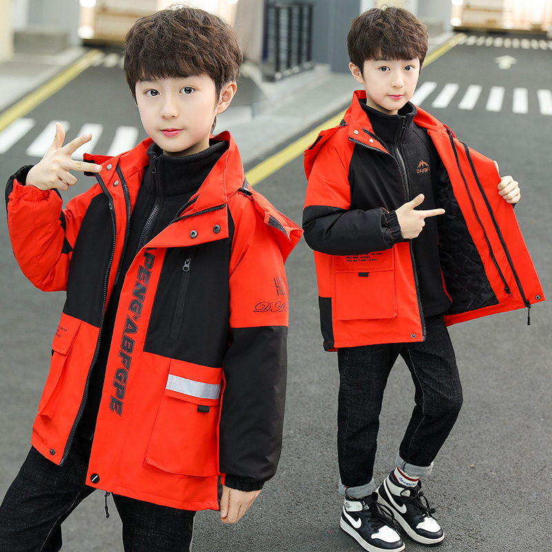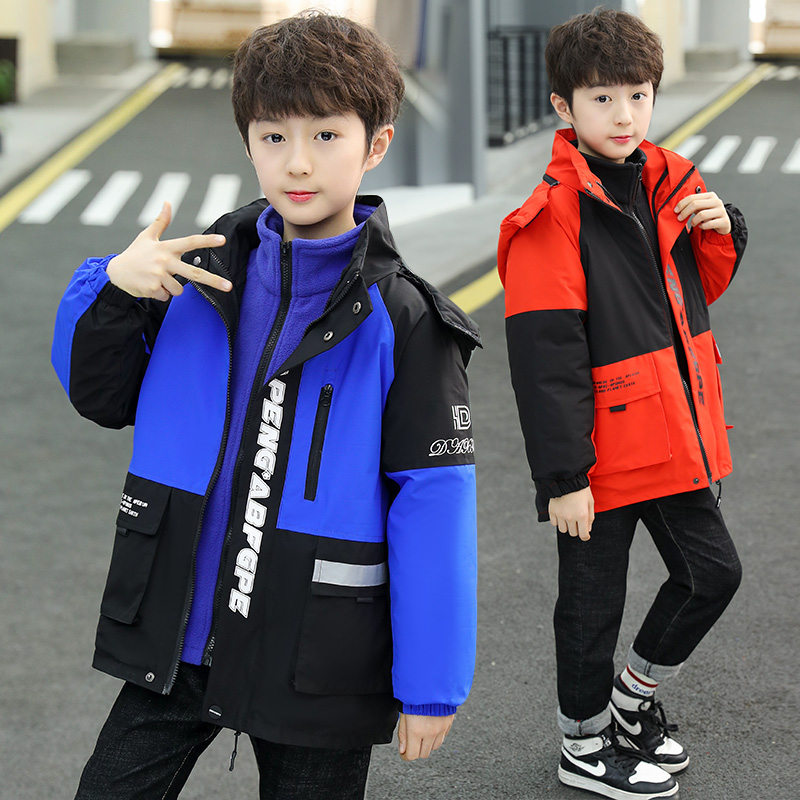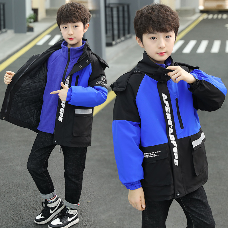 Boy gush thickened winter cotton clothes new CUHK children's school uniform jacket three-in-one detachable submachine clothes